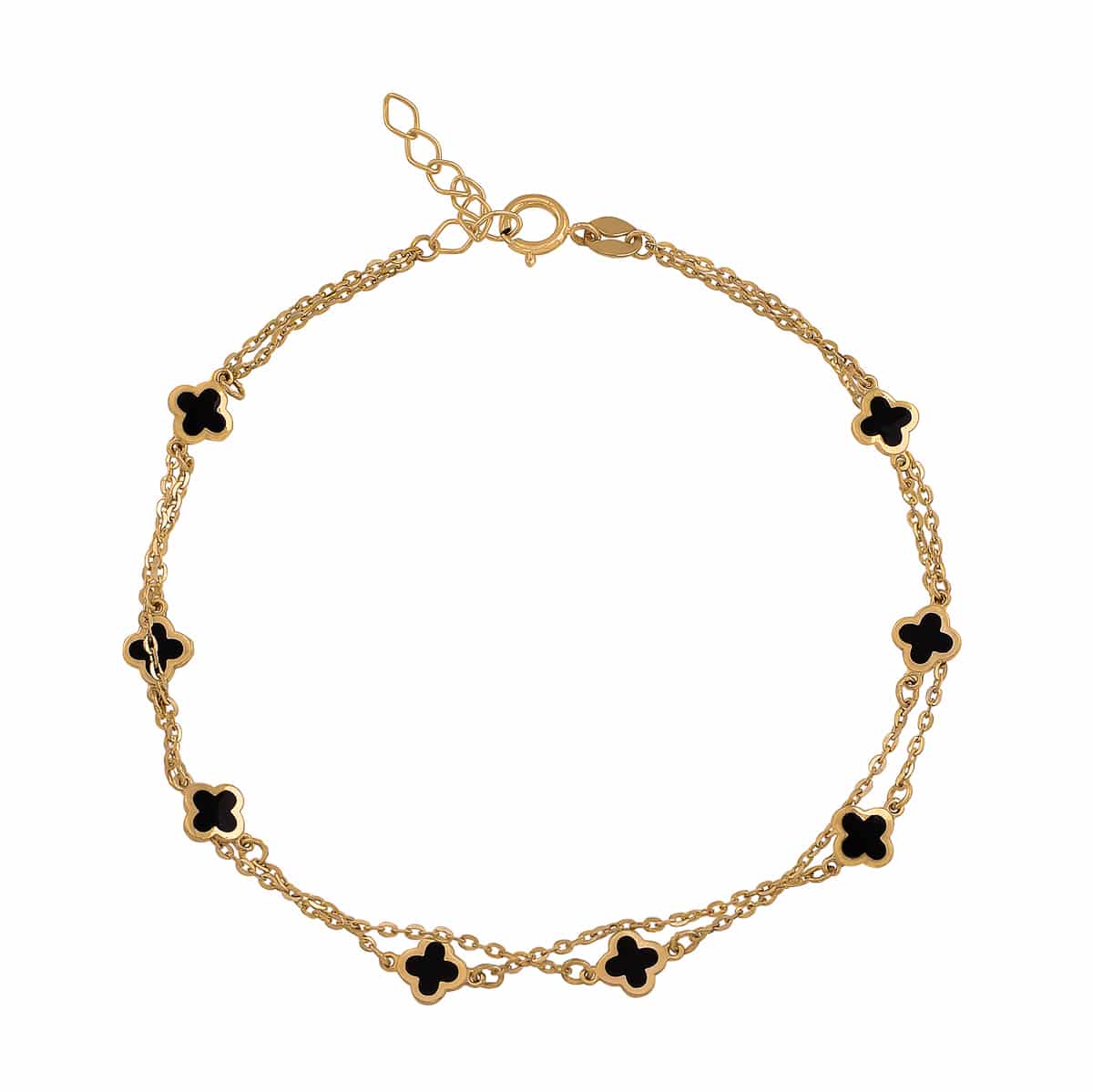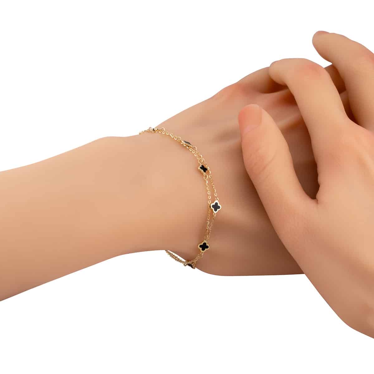 Bransoletka z żółtego złota na podwójnym łańcuszku z marokańskimi koniczynkami i czarną emalią pr.585