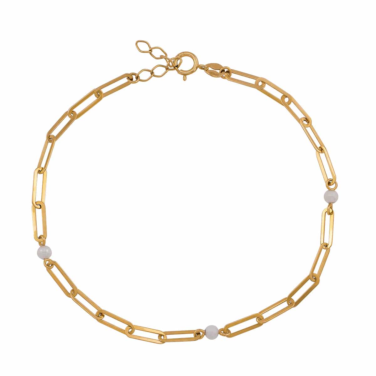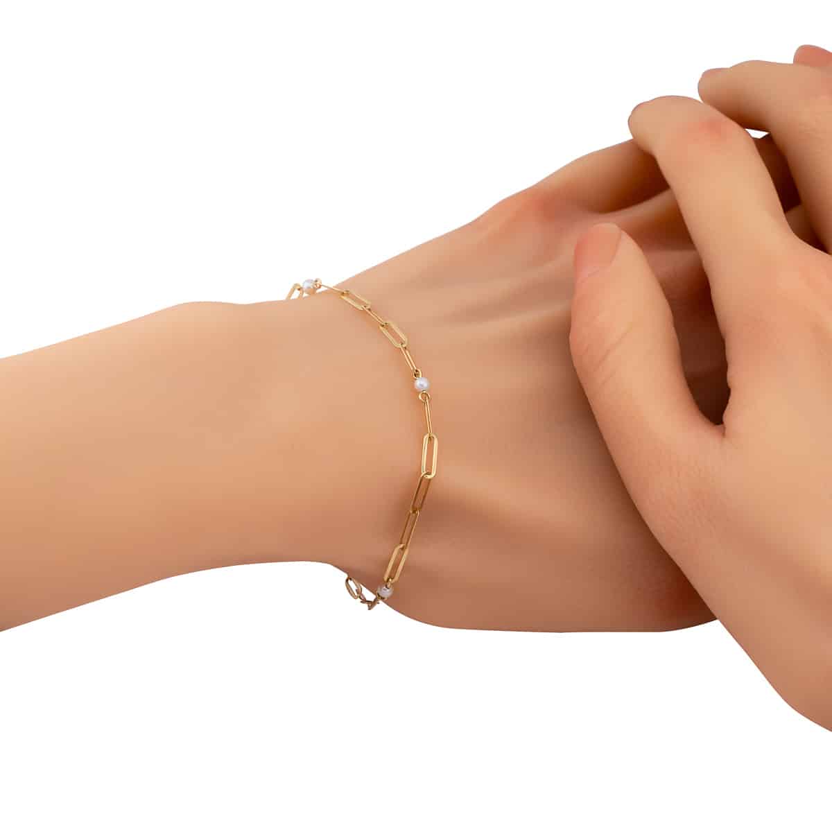 Bransoletka z żółtego złota z dużych ogniw z perełkami w pr.585