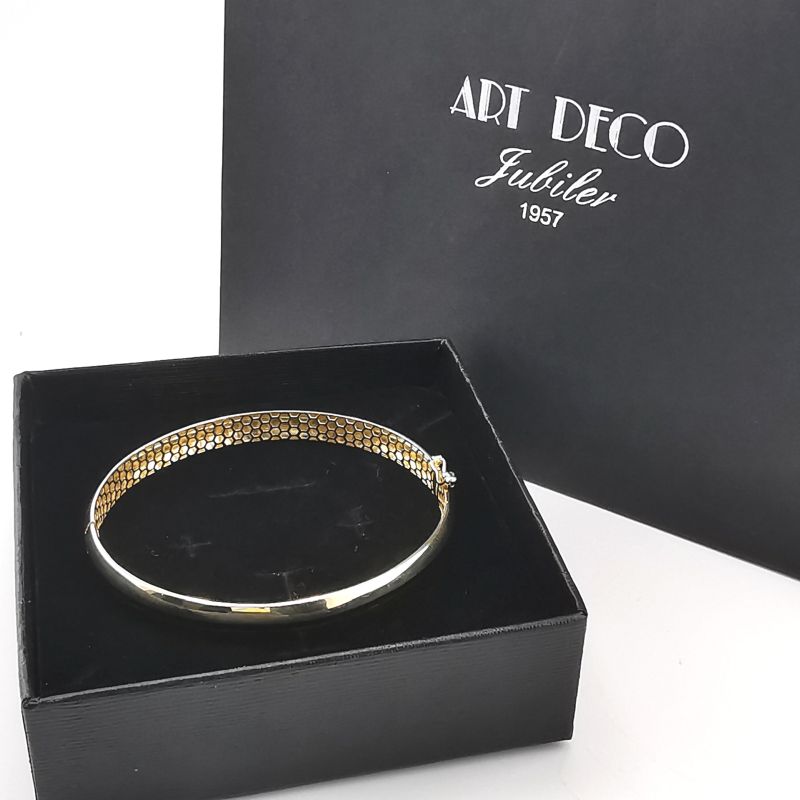 Złota elegancka sztywna bransoletka, wykonana z lśniącego złota została wykonana z dbałością o każdy szczegół.