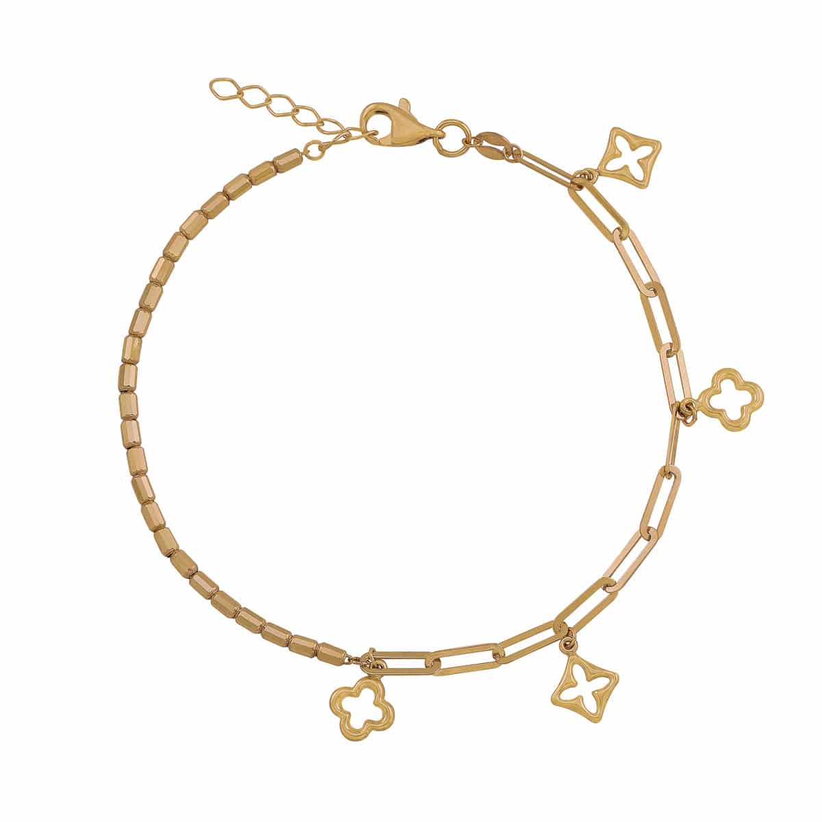 Bransoletka z żółtego złota z dwoma splotami łańcuszka i marokańskimi koniczynkami pr.585