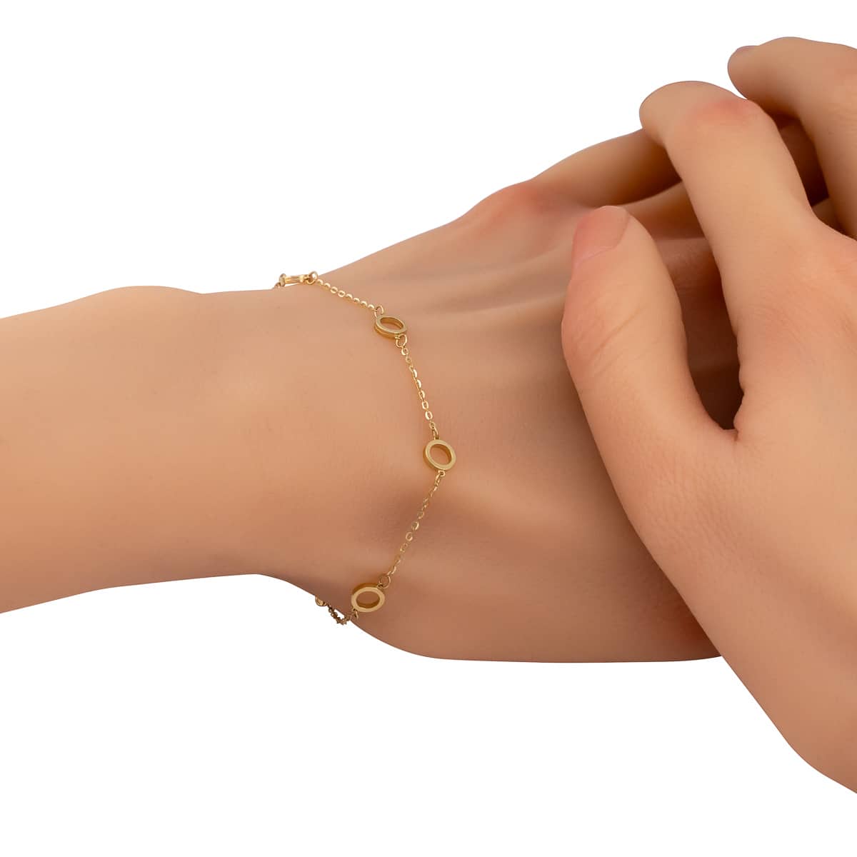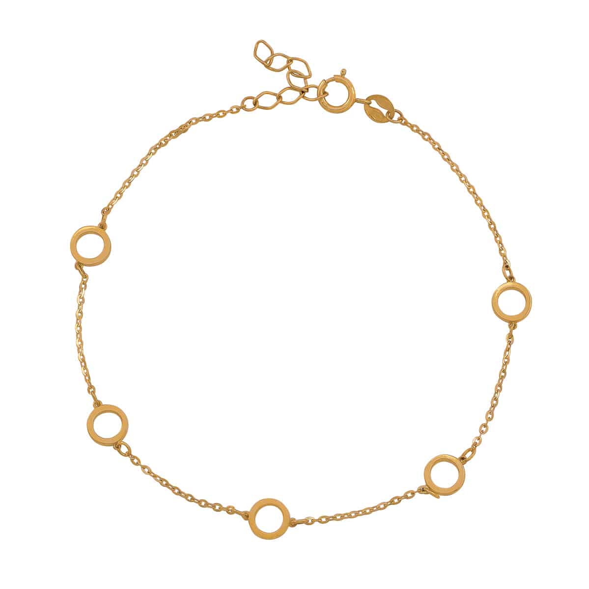 Ta piękna bransoletka wykonana jest z najwyższej jakości żółtego złota, które emanuje ciepłym, szlachetnym blaskiem. Jej głównym elementem dekoracyjnym są urocze kółeczka równomiernie rozmieszczone na całej długości, tworząc harmonijną kompozycję. Delikatny łańcuszek subtelnie oplata nadgarstek, dodając całości lekkości i wdzięku.