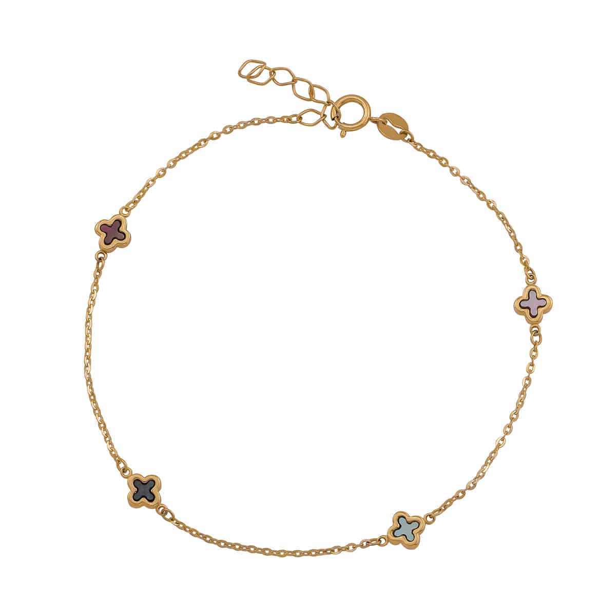 Bransoletka z żółtego złota z koniczynkami z masą perłową pr.585