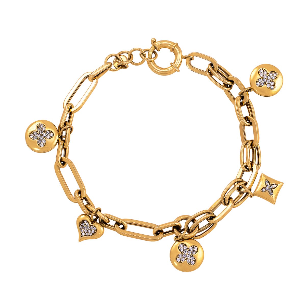 Bransoletka wykonana jest z wysokiej jakości żółtego złota, które emanuje ciepłym, głębokim blaskiem. Podłużne ogniwka nadają jej nowoczesny, lecz ponadczasowy charakter, doskonale komponując się z delikatnymi, wiszącymi zawieszkami. Na zawieszkach umieszczone są białe cyrkonie, które dodają subtelnego, ale efektownego połysku. Każda zawieszka ma inny kształt, co nadaje bransoletce oryginalności i czyni ją jeszcze bardziej interesującą.
