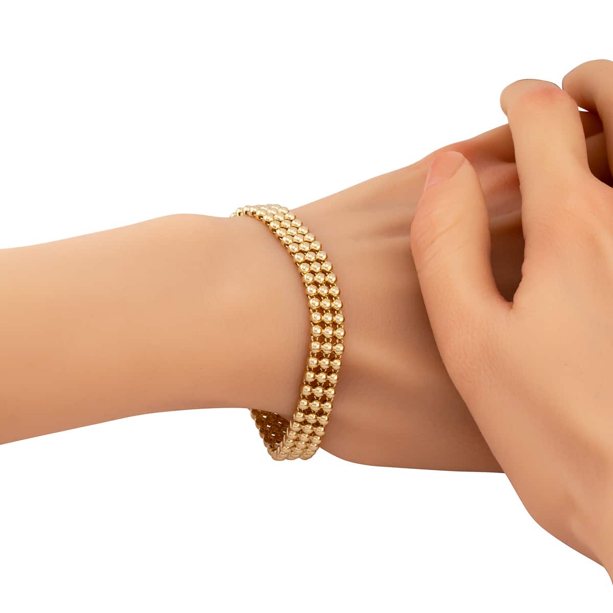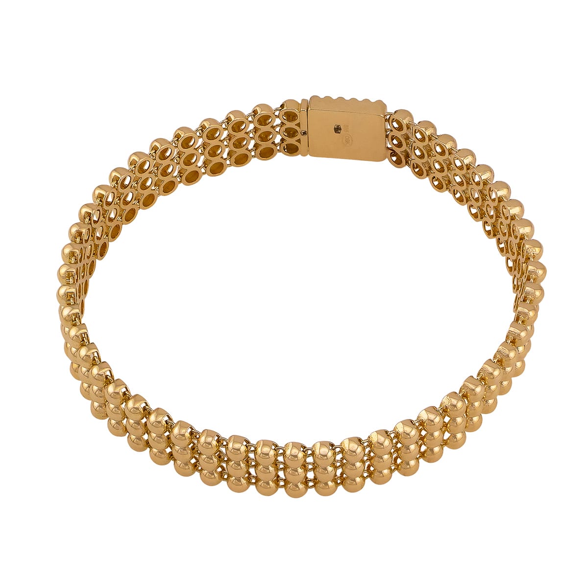 Wykonana z najwyższej jakości żółtego złota, bransoletka prezentuje się wyjątkowo efektownie. Jej powierzchnia składa się z trzech rzędów drobnych kuleczek, które tworzą harmonijną i wyrafinowaną kompozycję. Ten delikatny i zarazem pełen charakteru wzór podkreśla piękno złota, nadając mu głębi i niepowtarzalnego uroku.