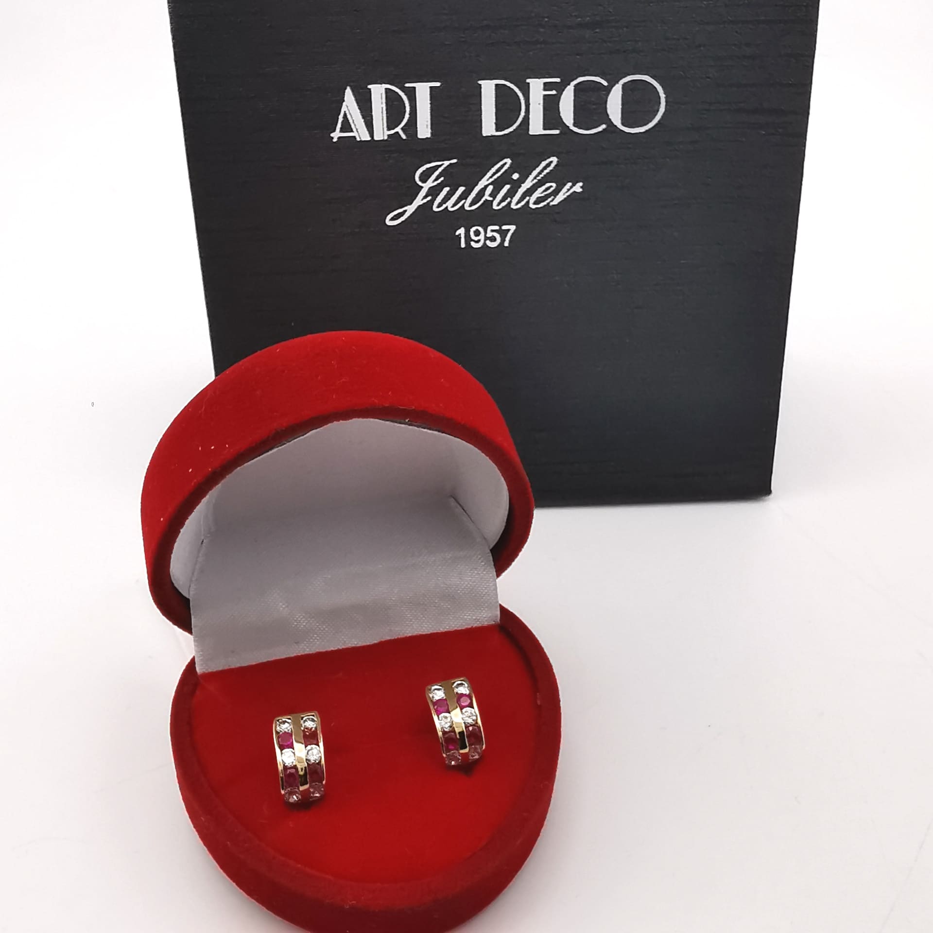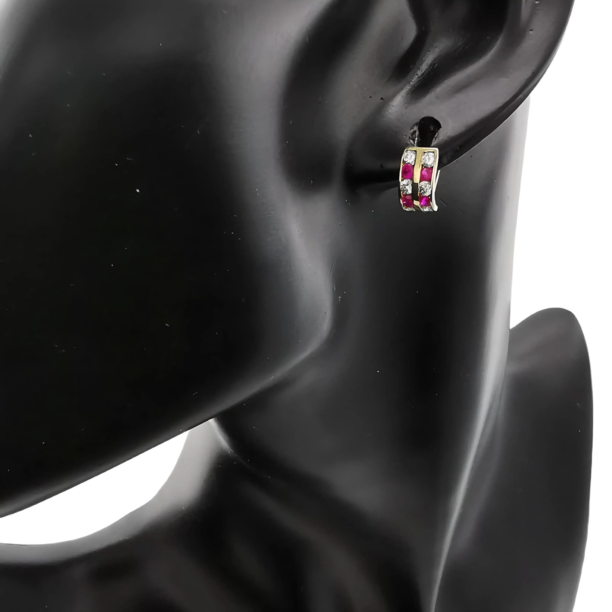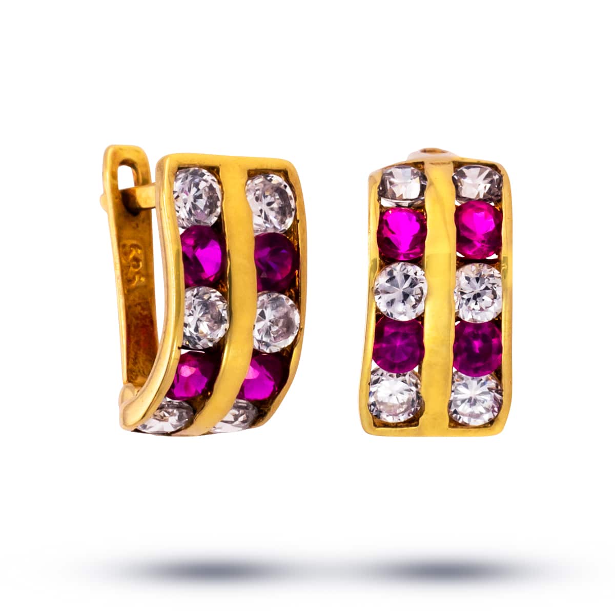 Kolczyki wykonane są z żółtego złota, które emanuje ciepłym blaskiem i podkreśla urok każdego stroju. Ich prostokątny kształt w połączeniu z dwoma rzędami migoczących cyrkonii przyciąga wzrok i dodaje szyku. Białe i różowe cyrkonie są precyzyjnie osadzone, tworząc harmonijną kompozycję kolorystyczną, która zachwyca swoją delikatnością i wyrafinowaniem.