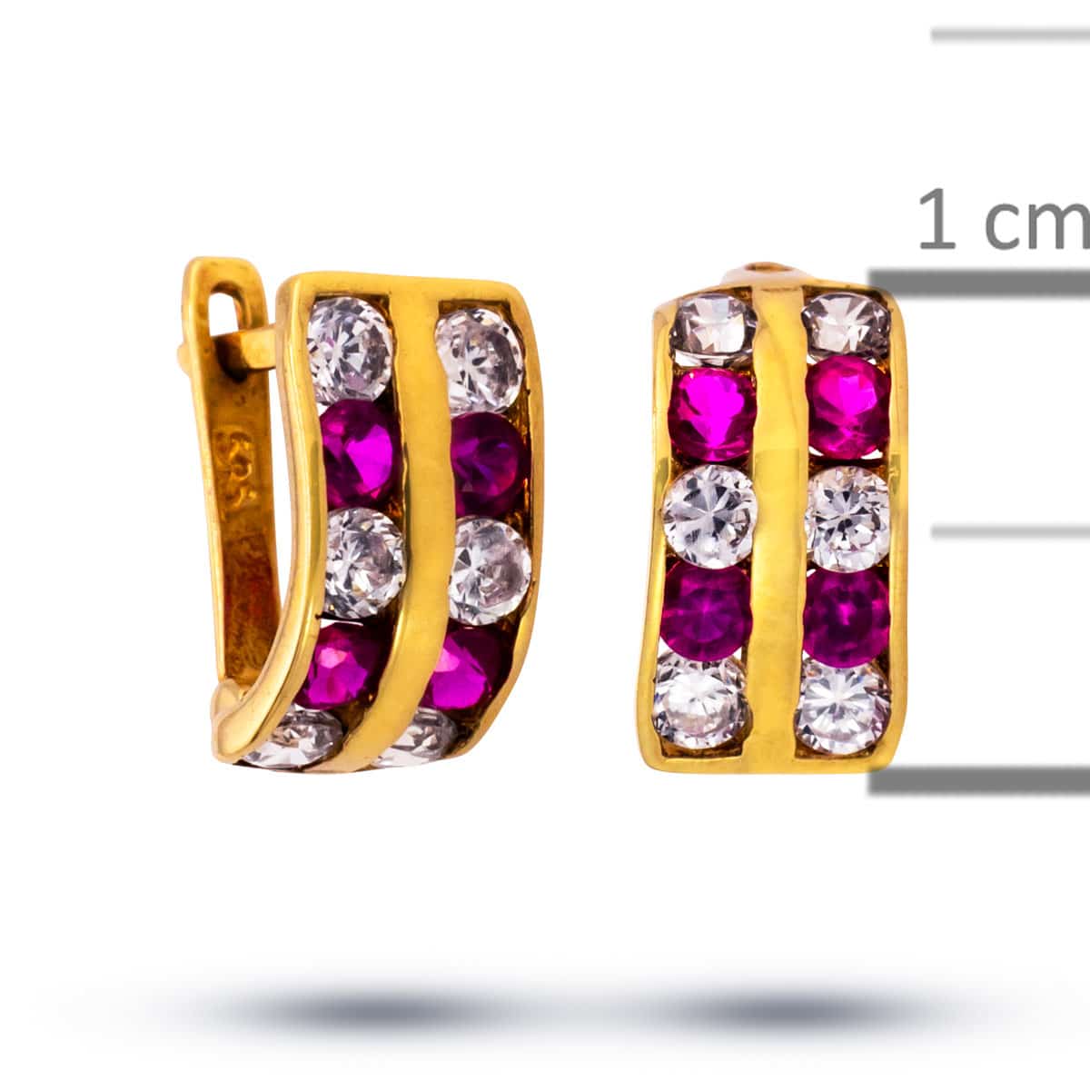 Złote dziecięce kolczyki ozdobione pięknymi dwukolorowymi cyrkoniami pr.585