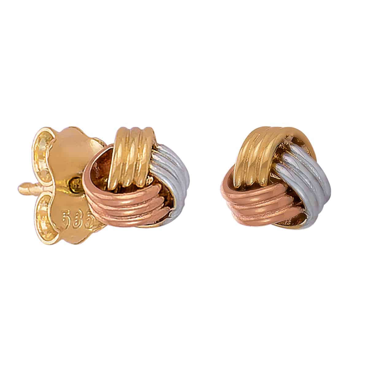 Kolczyki w trzech kolorach złota na sztycie pr. 585