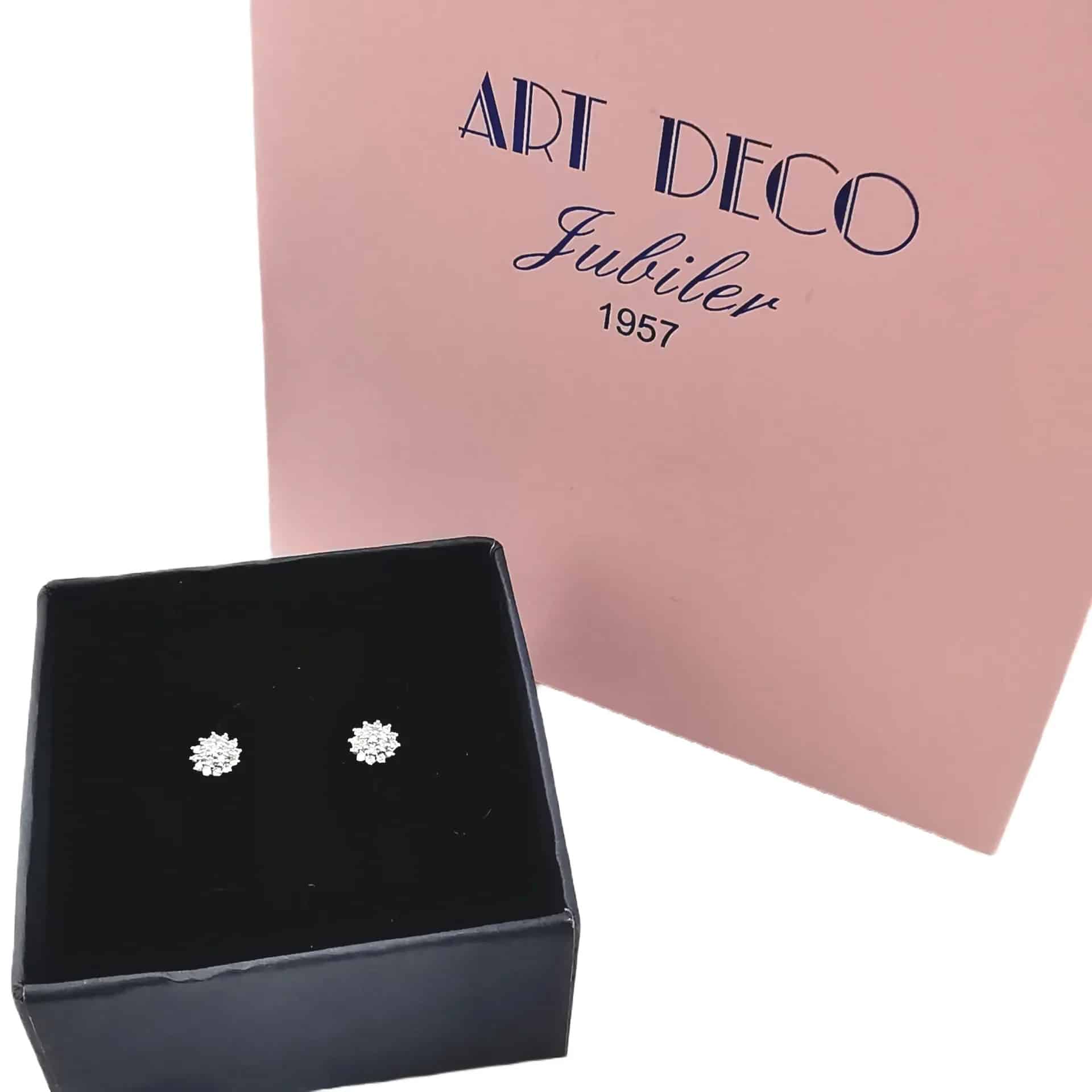 Dwukolorowe kolczyki w formie kwiata z brylantami pr. 585