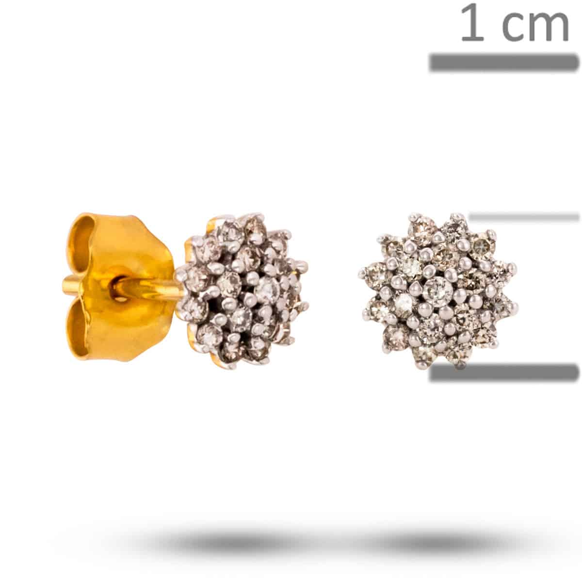 Te zachwycające kolczyki wykonane są z najwyższej jakości żółtego i białego złota, które doskonale się uzupełniają, tworząc harmonijną całość. Kwiatowy motyw, starannie zaprojektowany, kryje w sobie lśniące brylanty, których blask dodaje im niepowtarzalnego uroku. Kamienie osadzone są w precyzyjny sposób, zachwycając swoją iskrzącą powierzchnią i doskonałym szlifem, który wydobywa z nich maksimum blasku.