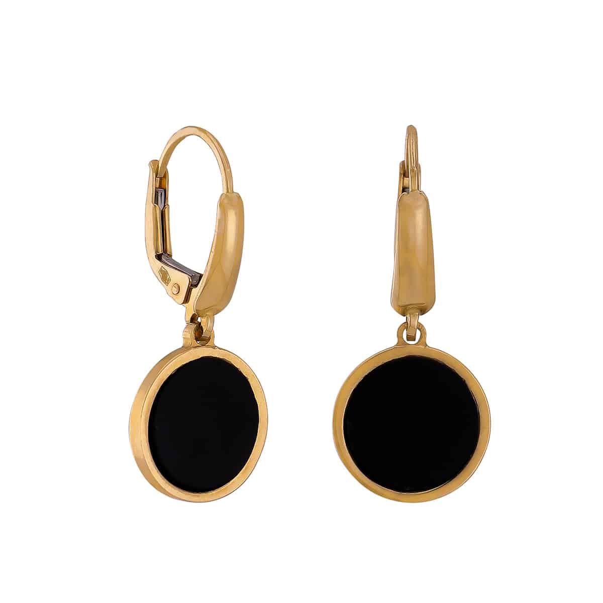 Kolczyki z żółtego złota z czarnym onyksem na zapięciu angielskim pr.585