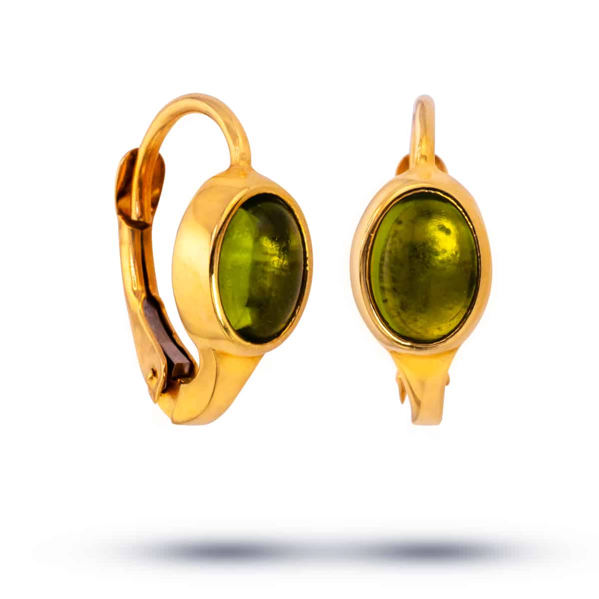Zanurz się w świecie wyjątkowej elegancji z naszymi złotymi kolczykami z oliwinem na francuskim zamku. To biżuteria, która przyciąga wzrok i dodaje blasku każdej stylizacji. Są unikalnym dodatkiem, wyróżniającym się doskonałym wykończeniem i precyzją wykonania.