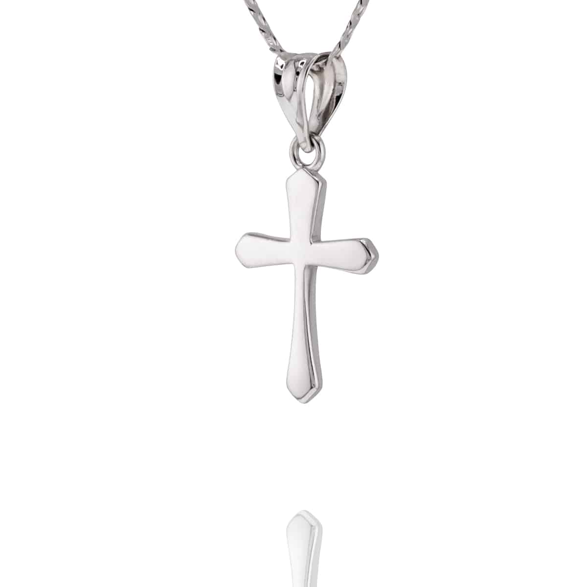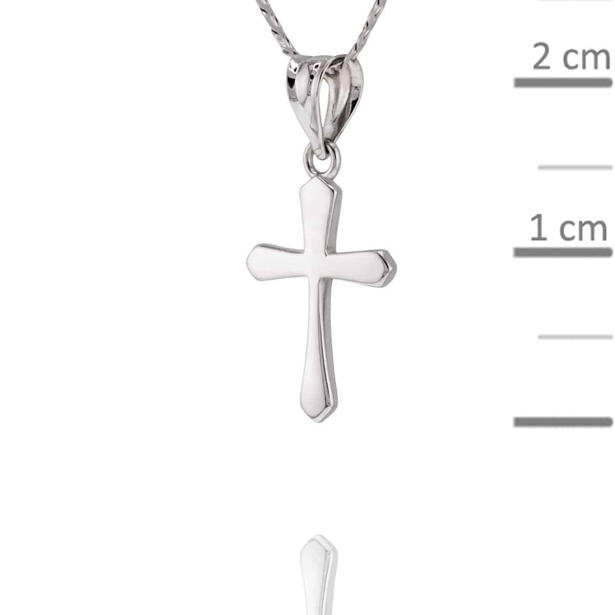 Wykonany z najwyższej jakości białego złota, krzyżyk przyciąga uwagę swoim lśniącym blaskiem i perfekcyjnym wykończeniem. Jego klasyczny kształt jest podkreślony gładką, polerowaną powierzchnią, która odbija światło, dodając mu niepowtarzalnego uroku. Proporcje są idealnie wyważone, co sprawia, że krzyżyk prezentuje się lekko i z wdziękiem na każdej szyi.