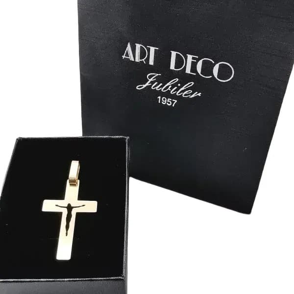 Kunszt wykonania krzyżyka widoczny jest w każdym detalu. Perfekcyjnie wycięta sylwetka oraz starannie wypolerowane krawędzie świadczą o najwyższej jakości i precyzji rzemieślniczej. Użycie wysokogatunkowego złota zapewnia trwałość i odporność na zarysowania, co czyni ten krzyżyk nie tylko pięknym, ale i praktycznym wyborem.