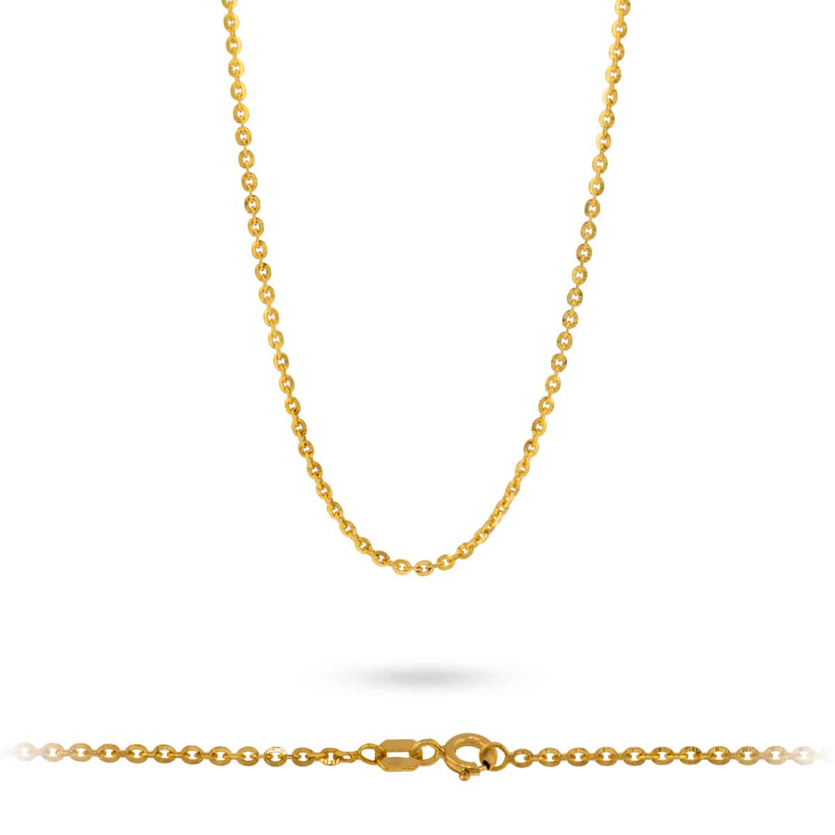 Wykonany z najwyższą precyzją, łańcuszek posiada klasyczny splot ankier, który charakteryzuje się regularnymi, owalnymi ogniwami. Jego subtelny blask i głęboki, ciepły odcień żółtego złota przyciągają uwagę, nadając każdej stylizacji wyjątkowy charakter. Proporcje łańcuszka są doskonale wyważone, co sprawia, że jest on nie tylko estetyczny, ale również wygodny w noszeniu.