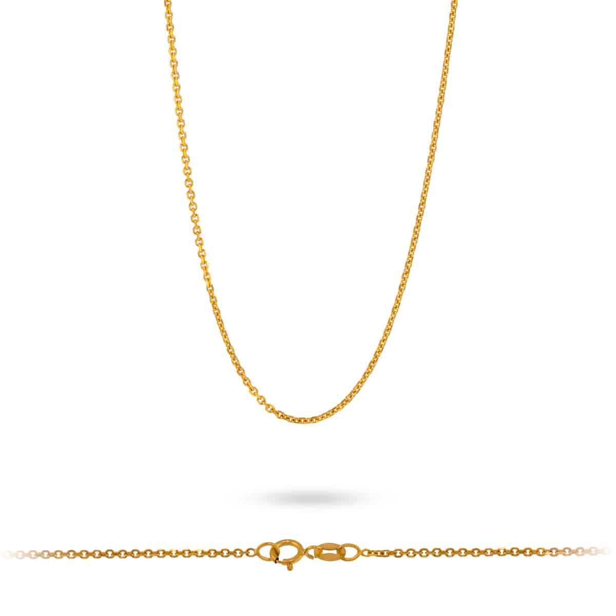 Ten łańcuszek wykonany jest z najwyższej jakości żółtego złota, które emanuje ciepłym, bogatym blaskiem. Jego lekkość i subtelna struktura sprawiają, że jest idealnym dodatkiem zarówno na co dzień, jak i na specjalne okazje. Splot ankier charakteryzuje się drobnymi, symetrycznymi ogniwami, które tworzą harmonijną całość, przyciągając wzrok swoją precyzją i starannością wykonania.