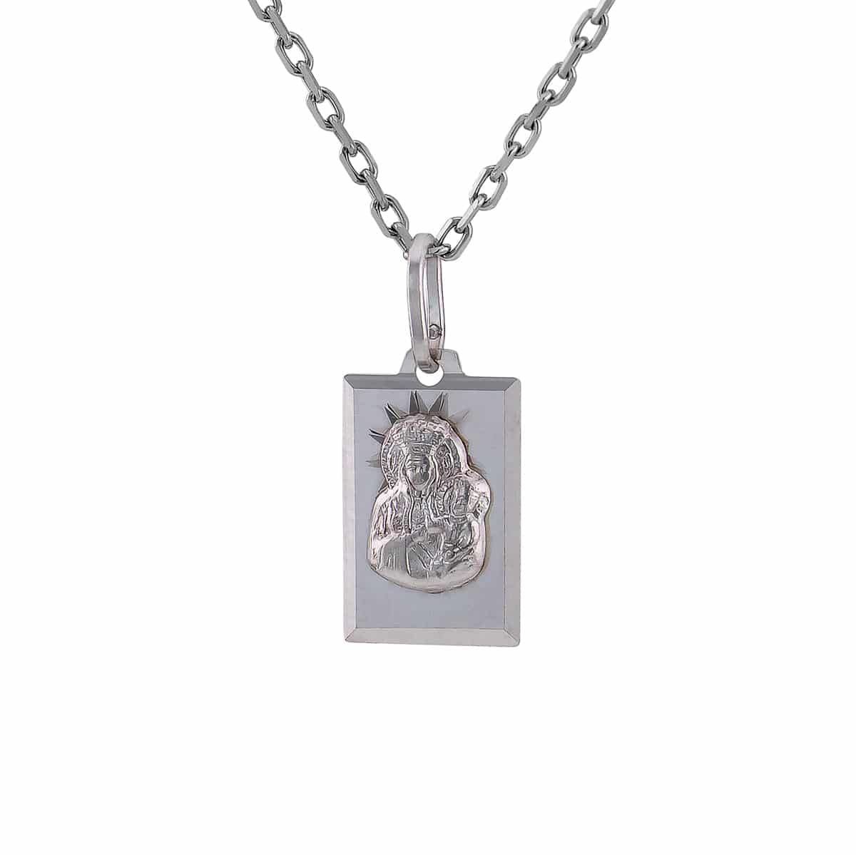 Medalik z białego złota Matka Boska Częstochowska w kwadratowej oprawie w połysku pr.585