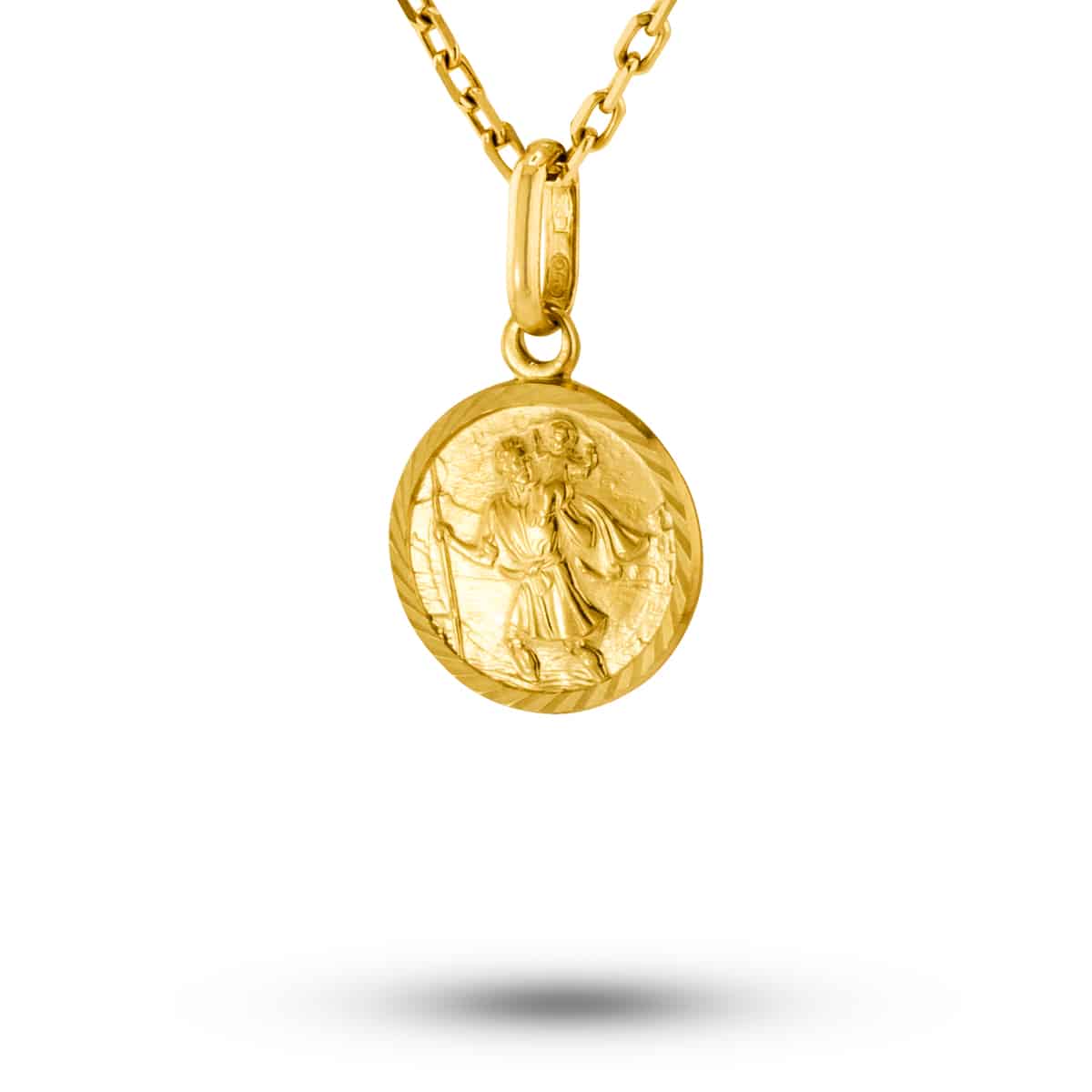 Wykonany z najwyższej jakości żółtego złota, medalik prezentuje ciepły, głęboki odcień, który emanuje luksusem i klasą. Jego okrągły kształt jest klasyczny i uniwersalny, idealnie pasujący do każdej stylizacji. Diamentowane wykończenie dodaje blasku, tworząc subtelną grę światła na powierzchni. Centralnym punktem jest wizerunek Świętego Krzysztofa, precyzyjnie odwzorowany, co dodaje mu duchowego i symbolicznego znaczenia.