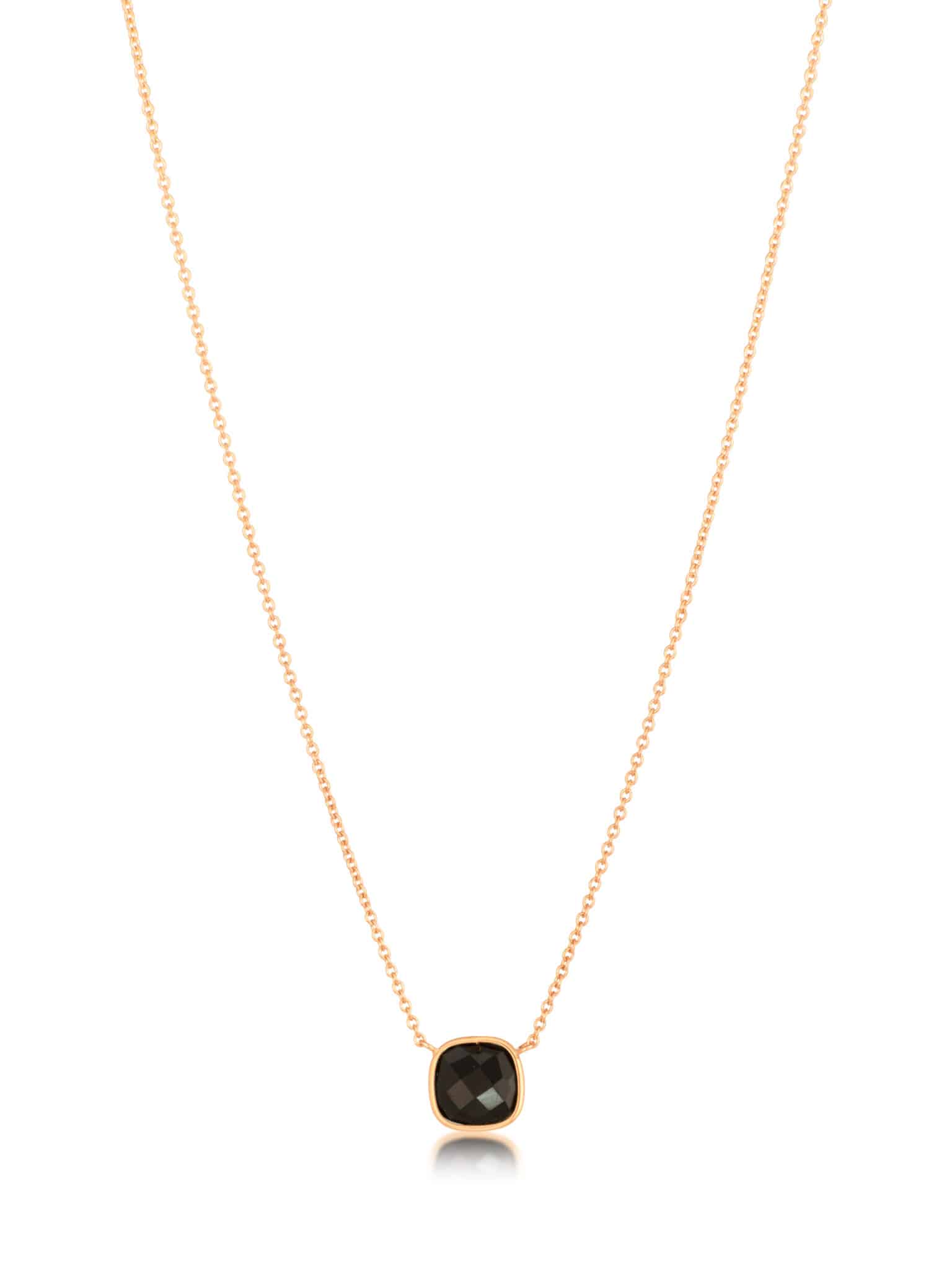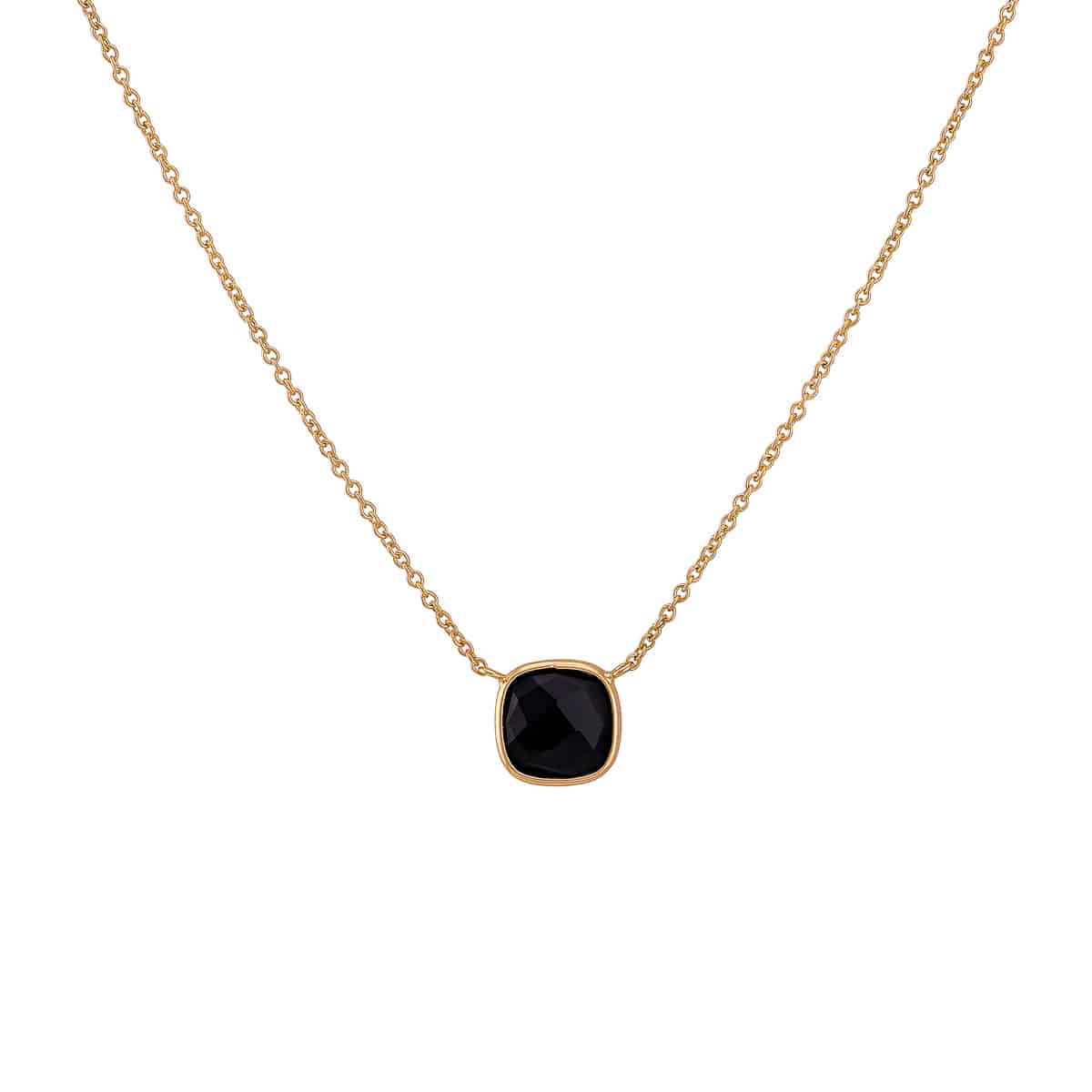 Naszyjnik wykonany jest z najwyższej jakości żółtego złota, które emanuje ciepłym, klasycznym odcieniem. Centralnym punktem tej biżuterii jest głęboki, czarny onyks, osadzony w eleganckiej oprawie. Kamień o fasetowanej powierzchni zachwyca subtelnym połyskiem, przyciągając spojrzenia i dodając naszyjnikowi niepowtarzalnego uroku. Prosty, a zarazem nowoczesny design sprawia, że naszyjnik doskonale komponuje się z różnymi stylizacjami.