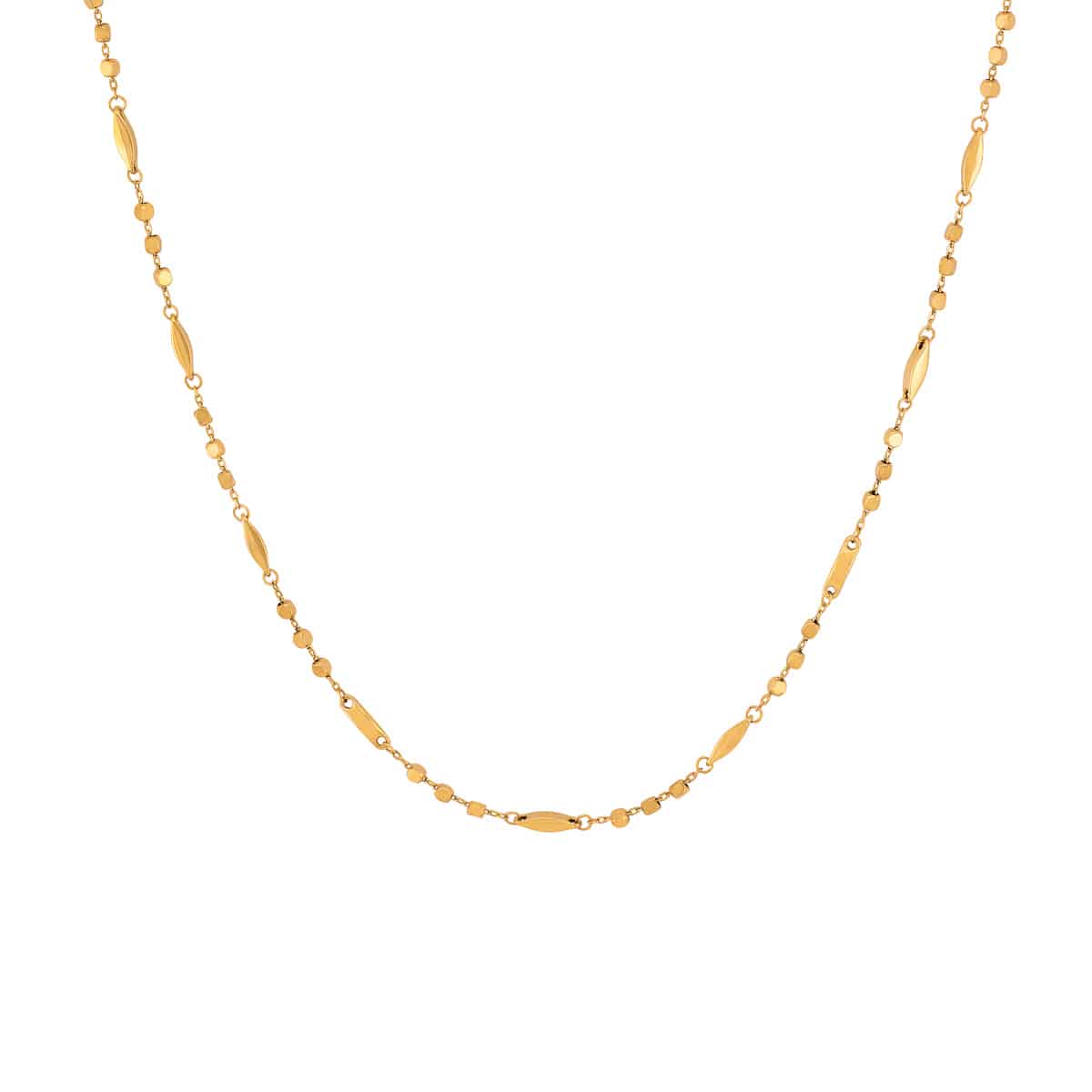 Naszyjnik wykonany jest z najwyższej jakości żółtego złota, które olśniewa swoim ciepłym, słonecznym blaskiem. Delikatne kuleczki rozmieszczone na całej długości naszyjnika dodają mu lekkości i zwiewności, podczas gdy unikalne łezki wprowadzają element zaskoczenia i przyciągają wzrok. Całość tworzy harmonijną kompozycję, która jest jednocześnie subtelna i wyrazista.