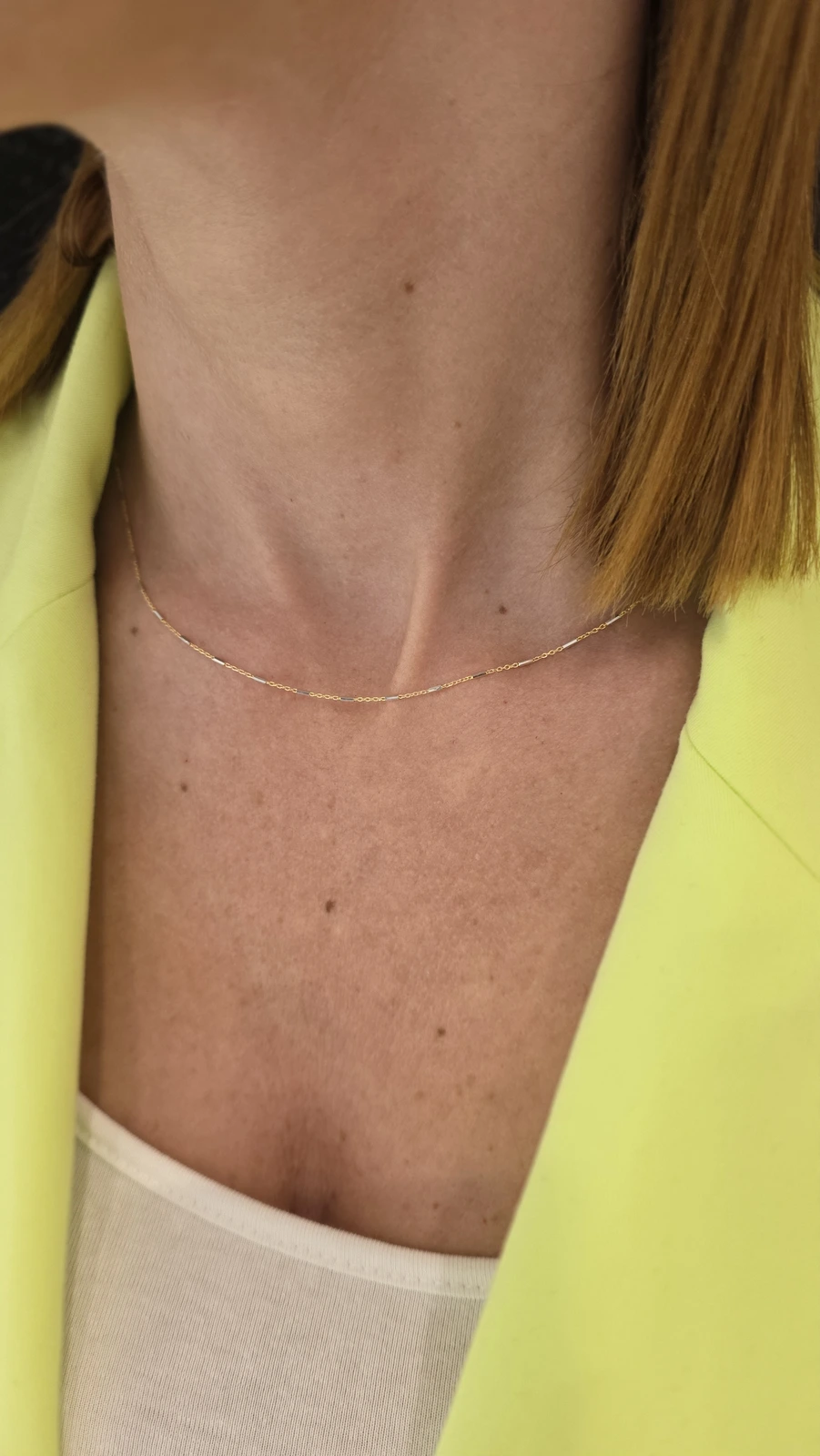 Subtelny złoty naszyjnik z blaszkami z białego złota pr. 585