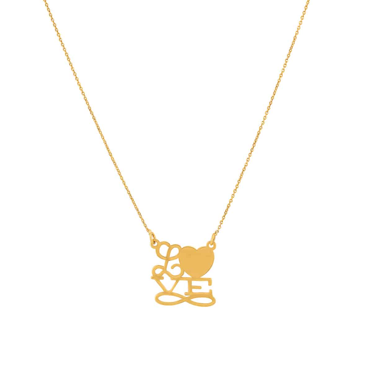Wykonany z wysokiej jakości żółtego złota, ten naszyjnik emanuje ciepłym, promiennym blaskiem. Delikatny łańcuszek subtelnie podkreśla dekolt, a zawieszka w formie napisu 'love’ z sercem i symbolem nieskończoności dodaje mu romantycznego uroku. Precyzyjne wykończenie i dbałość o detale sprawiają, że jest to biżuteria o wyjątkowej elegancji.