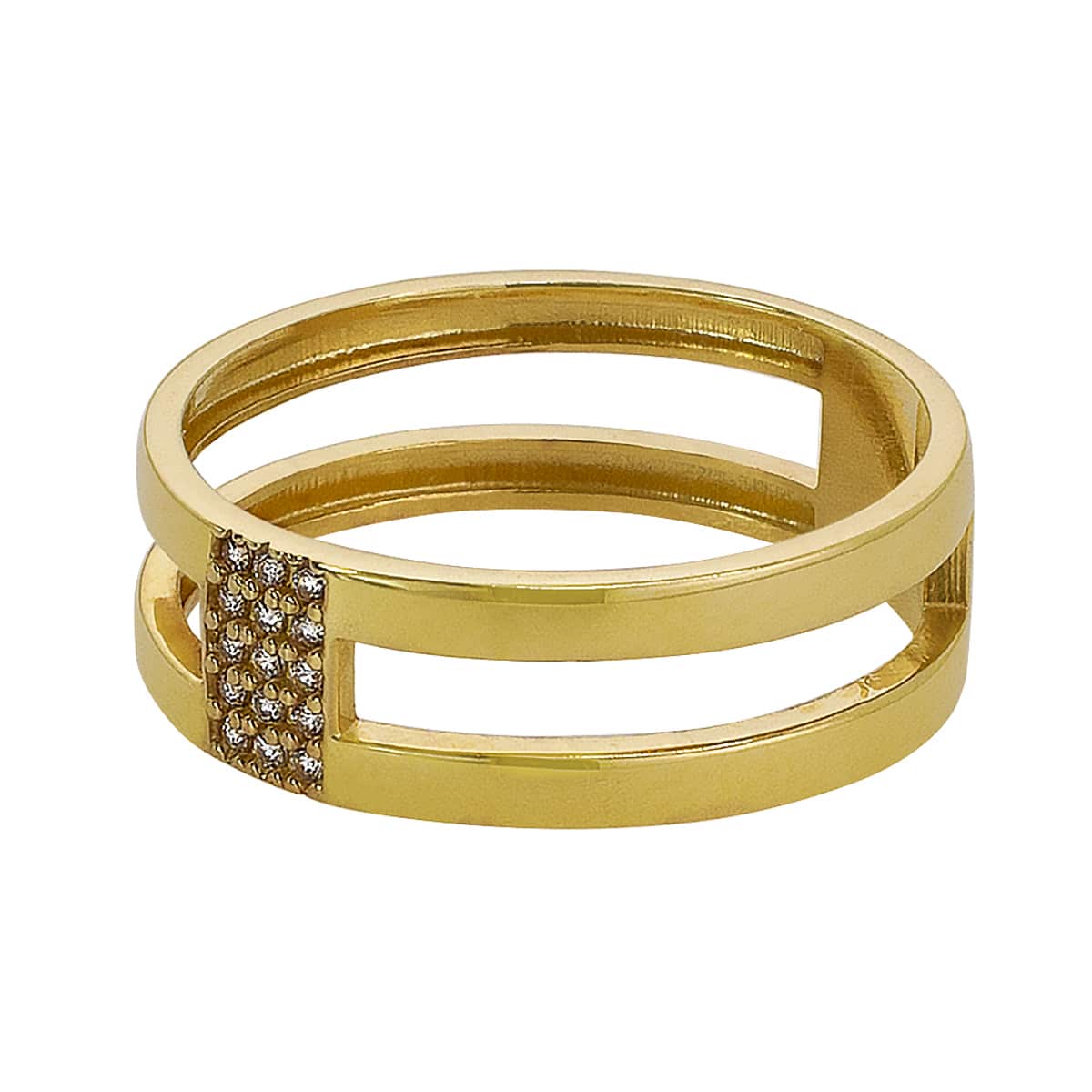 Nowoczesny Złoty Pierścionek– Geometryczna Forma z Cyrkoniami pr. 585