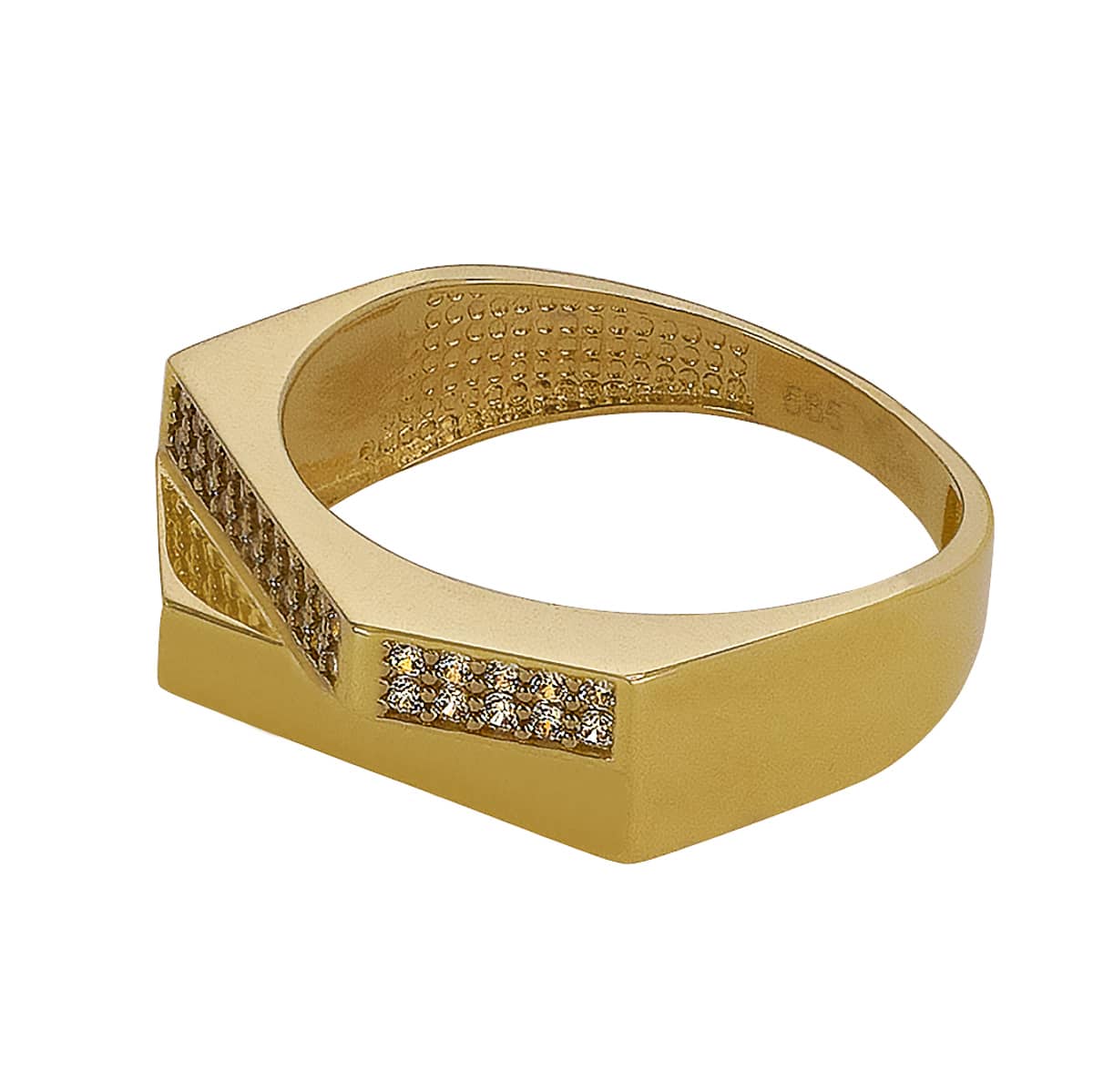 Nowoczesny Złoty Pierścionek Sygnetowy z Cyrkoniami – Geometryczny Design pr. 585