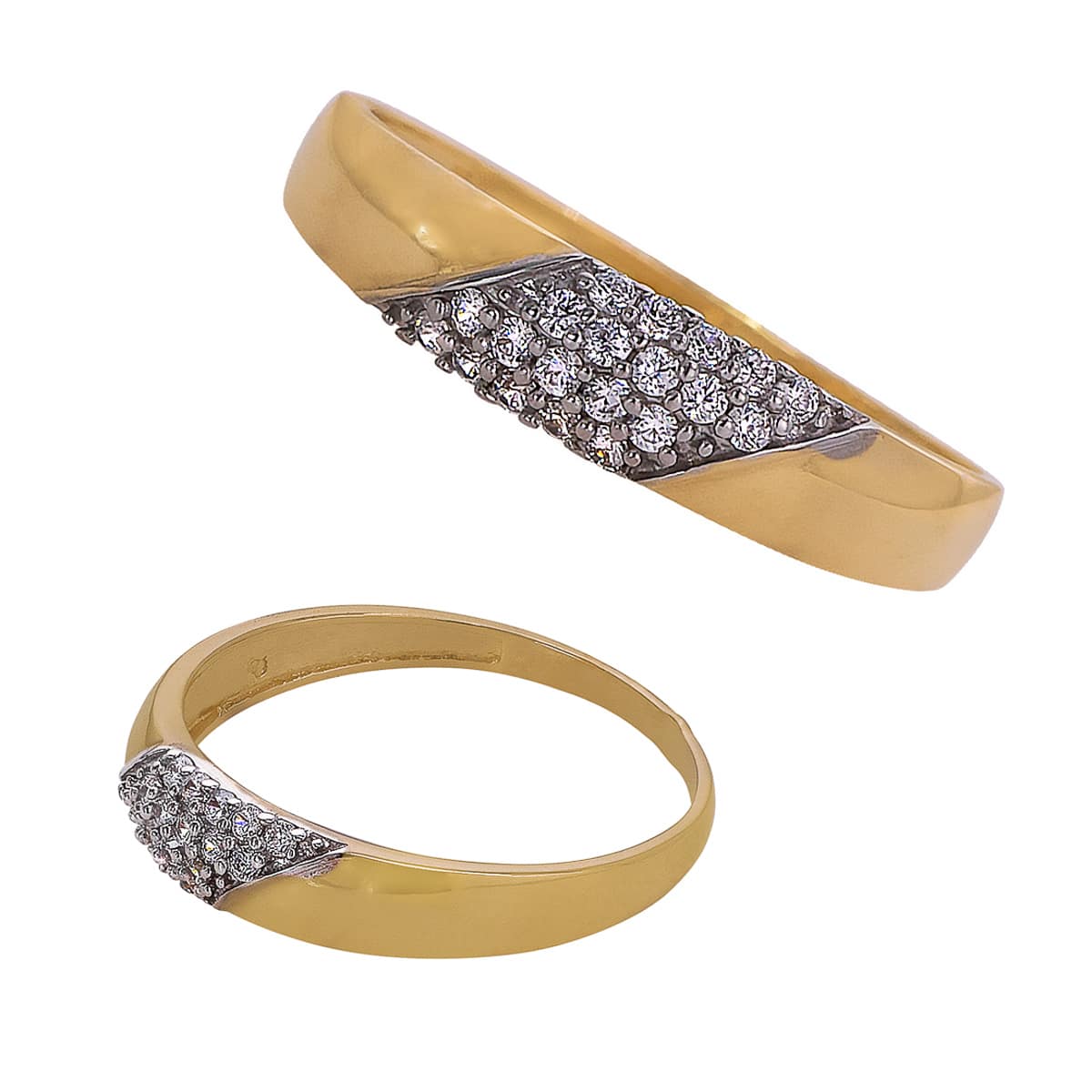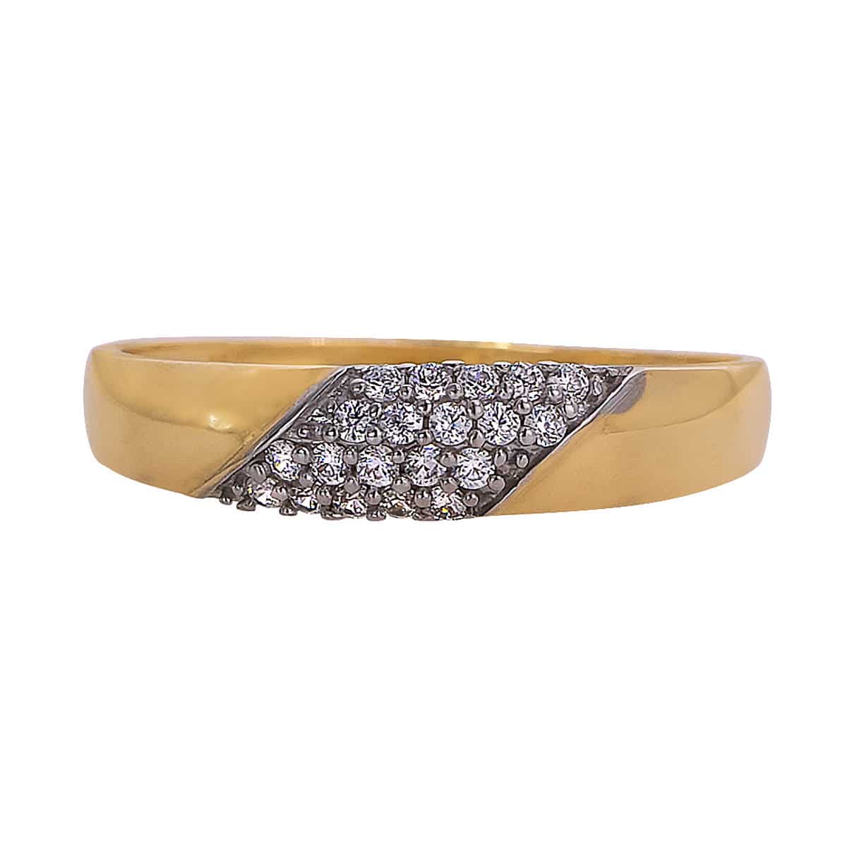 Pierścionek obrączkowy z cyrkonami z żółtego złota pr. 585