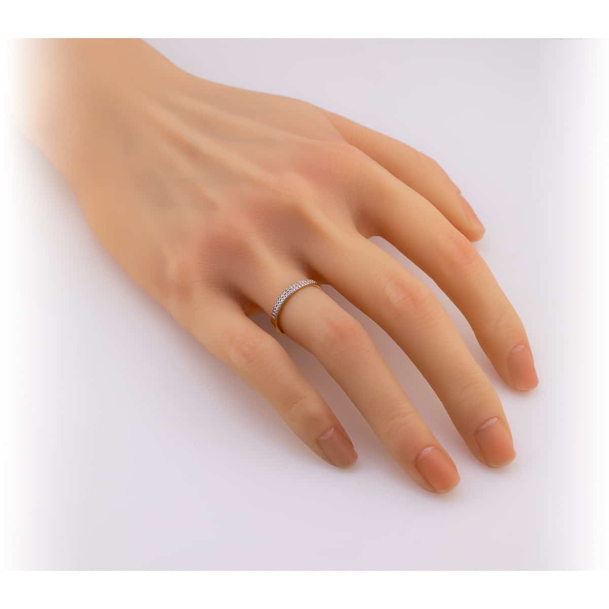 Pierścionek – obrączka wysadzany cyrkoniami.