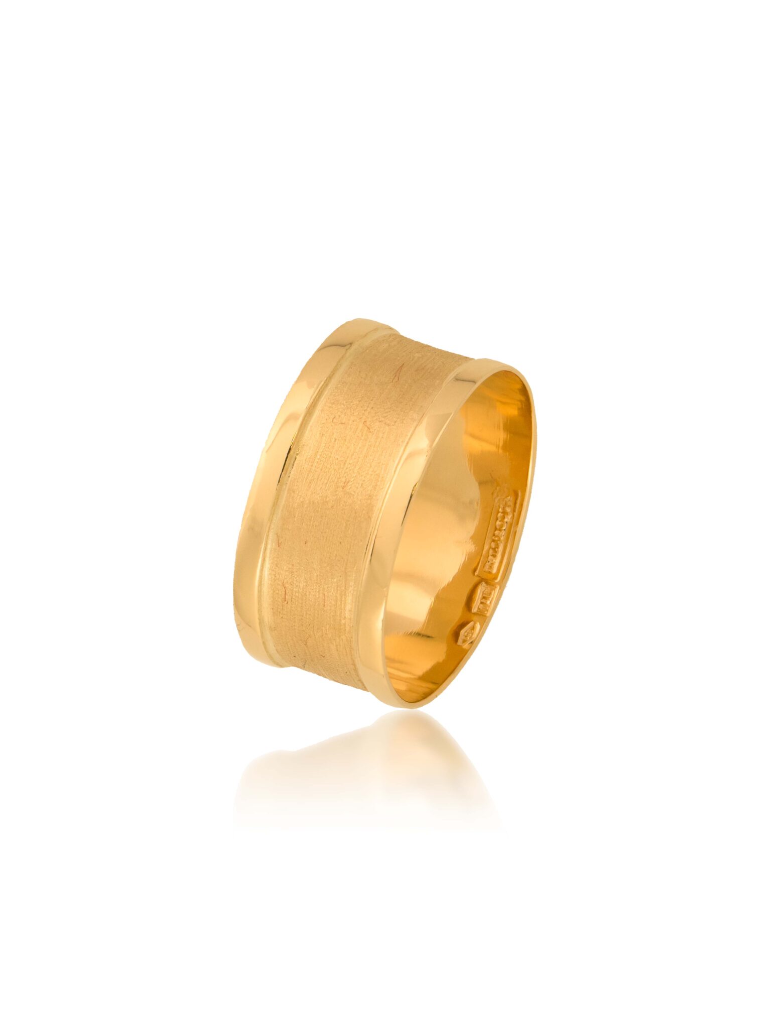 Pierścionek wykonany z żółtego złota zachwyca swoim ciepłym odcieniem, który emanuje luksusem i klasą. Szeroka obrączka, o prostym i minimalistycznym kształcie, dodaje mu nowoczesnego charakteru. Matowa powierzchnia pierścionka tworzy subtelny kontrast z jego błyszczącymi krawędziami, co dodaje dodatkowej głębi i wyrazistości. Unikalna faktura sprawia, że jest to biżuteria, której trudno się oprzeć.