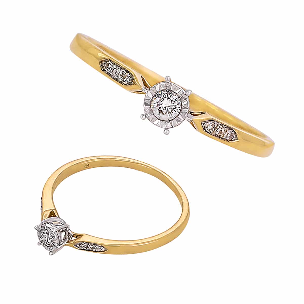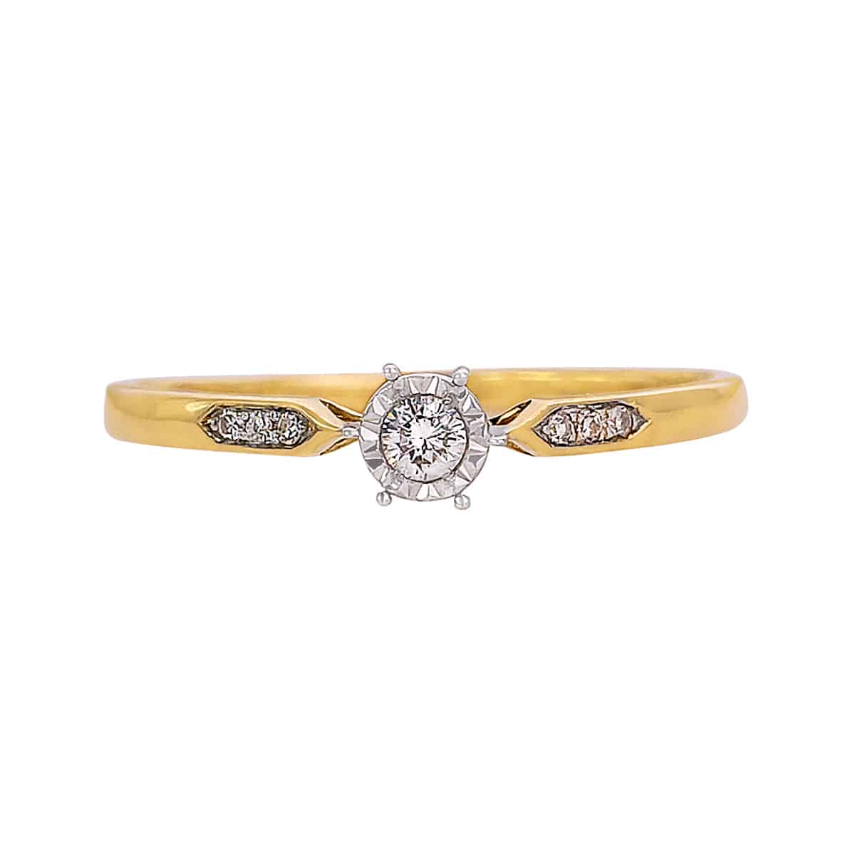 Wykonany z żółtego złota o ciepłym, klasycznym odcieniu, pierścionek emanuje blaskiem i elegancją. Centralny brylant, osadzony z precyzją, przyciąga wzrok swoją czystością i blaskiem. Delikatne zdobienia po bokach dodają pierścionkowi dodatkowego uroku, tworząc harmonijną całość. Jest to biżuteria, która nie tylko zdobi, ale także podkreśla indywidualny styl noszącego.