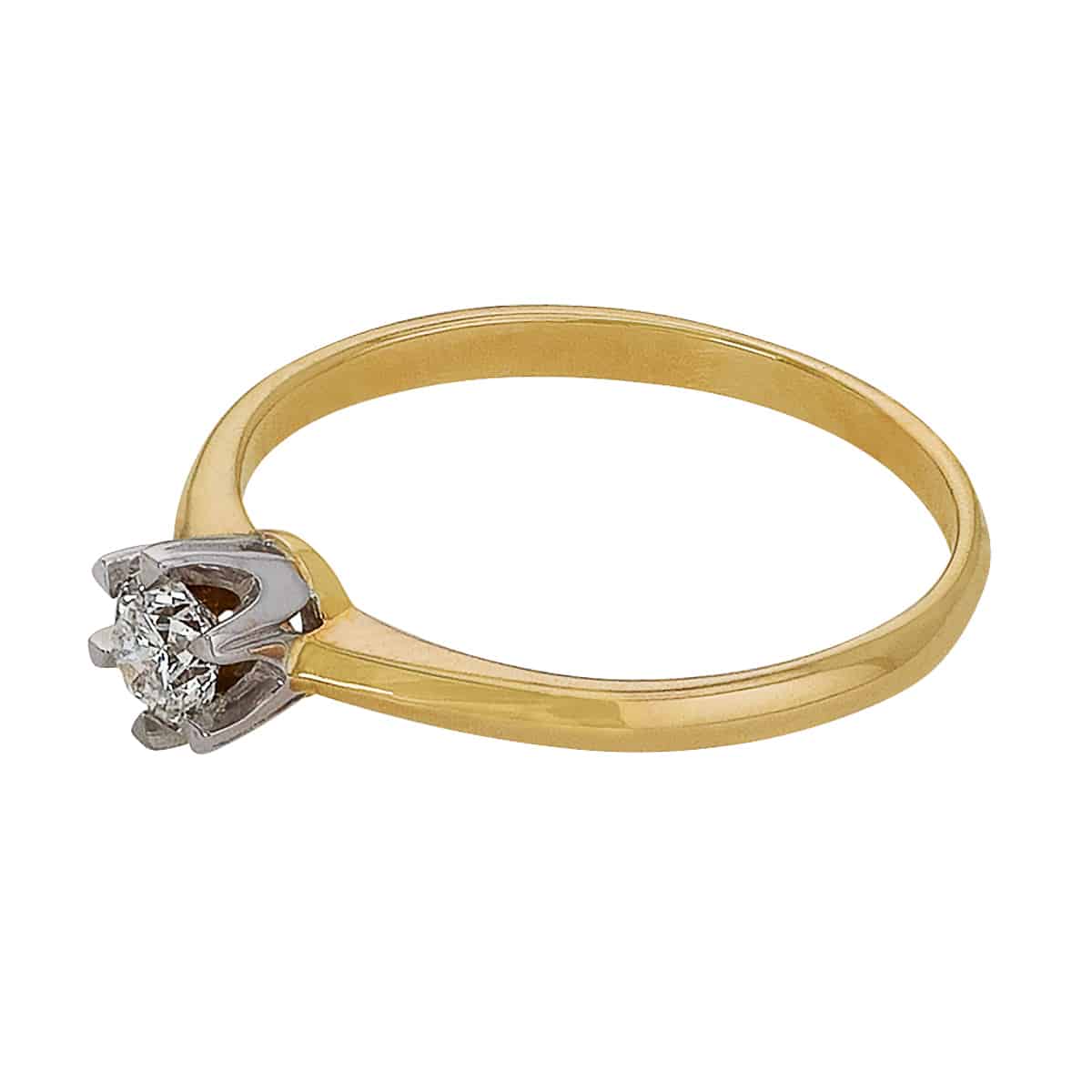 Wykonany z najwyższej jakości żółtego złota, pierścionek zachwyca ciepłym, złocistym odcieniem, który doskonale komponuje się z blaskiem centralnego brylantu. Kamień o szlifie diamentowym i masie 0,20ct jest precyzyjnie osadzony w solidnej oprawie, która podkreśla jego piękno i świetlistość. Delikatna, lecz wytrzymała szyna pierścionka harmonijnie łączy się z oprawą, tworząc spójną i elegancką całość.