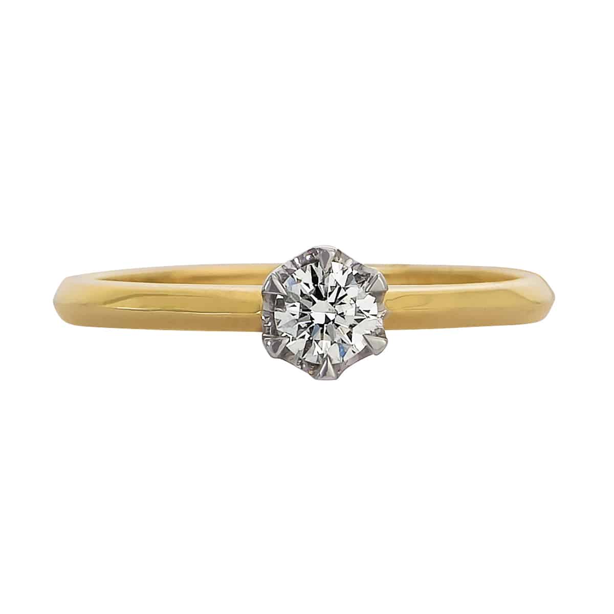 Wykonany z najwyższej jakości żółtego złota, pierścionek zachwyca ciepłym, złocistym odcieniem, który doskonale komponuje się z blaskiem centralnego brylantu. Kamień o szlifie diamentowym i masie 0,25ct jest precyzyjnie osadzony w solidnej oprawie, która podkreśla jego piękno i świetlistość. Delikatna, lecz wytrzymała szyna pierścionka harmonijnie łączy się z oprawą, tworząc spójną i elegancką całość.