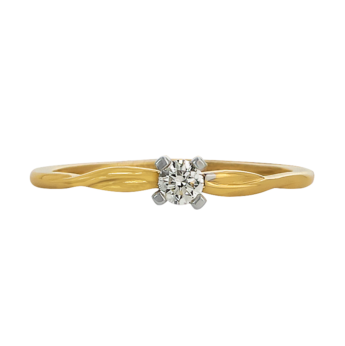 Pierścionek wykonany jest z żółtego złota, którego ciepły odcień pięknie kontrastuje z blaskiem brylantu. Jego klasyczny, okrągły kształt jest niezwykle elegancki, a delikatna oprawa kamienia dodaje mu wyrafinowania. Brylant osadzony jest w minimalistycznej oprawie, która podkreśla jego naturalny blask i czystość, czyniąc go centralnym punktem tej wyjątkowej biżuterii.