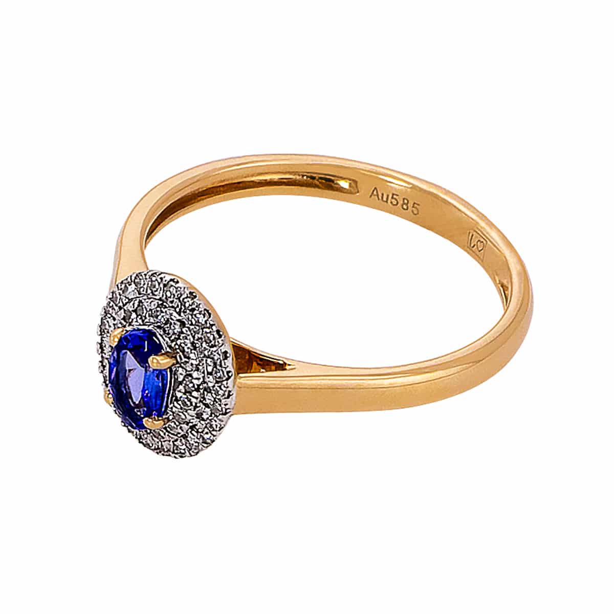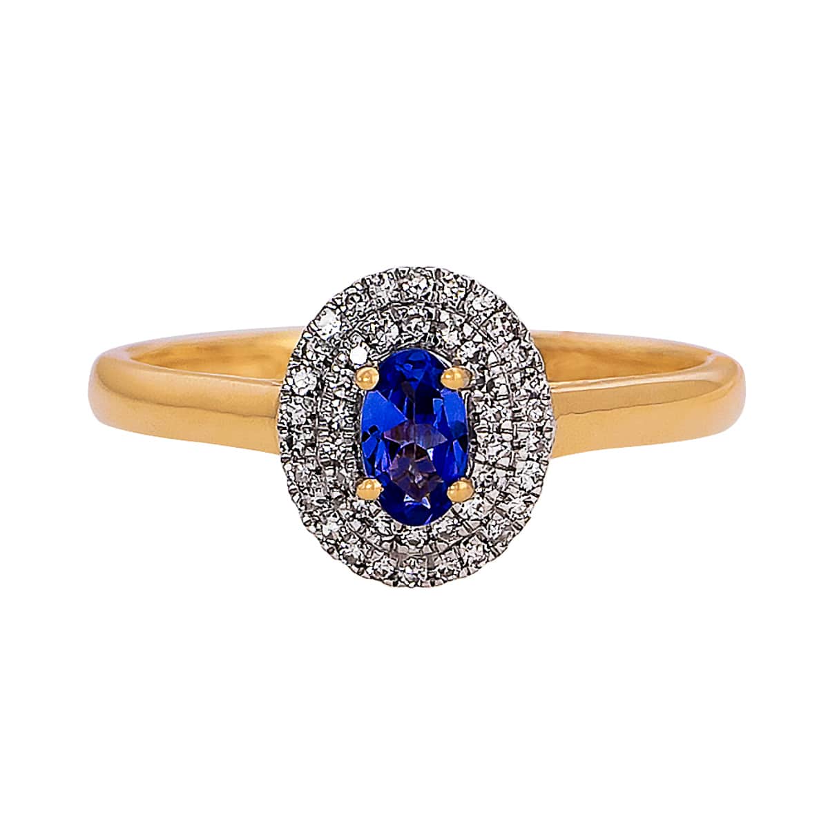 Pierścionek z żółtego złota z tanzanitem i brylantami pr.585