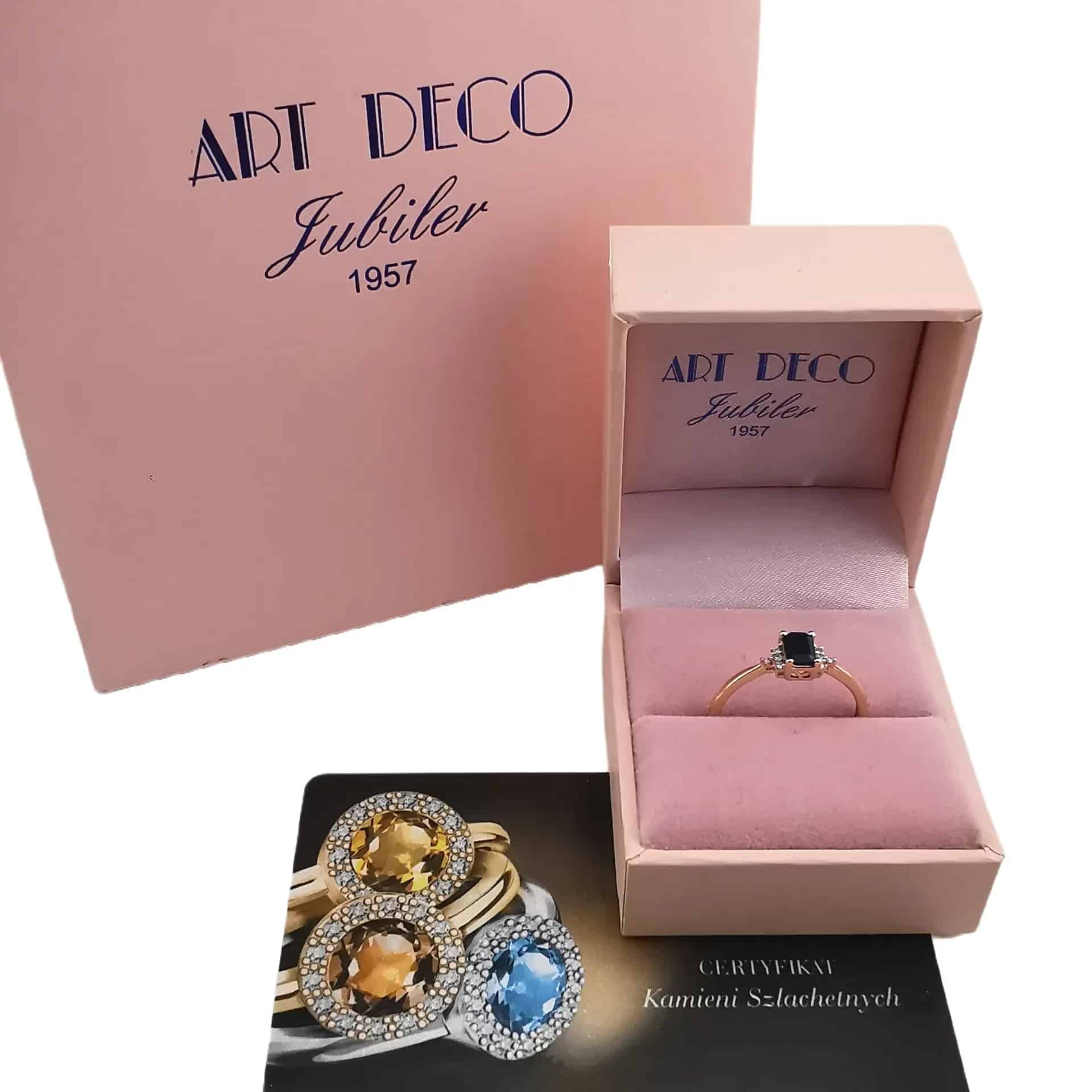 Pierścionek z żółtego złota z szafirem i brylantami pr.585