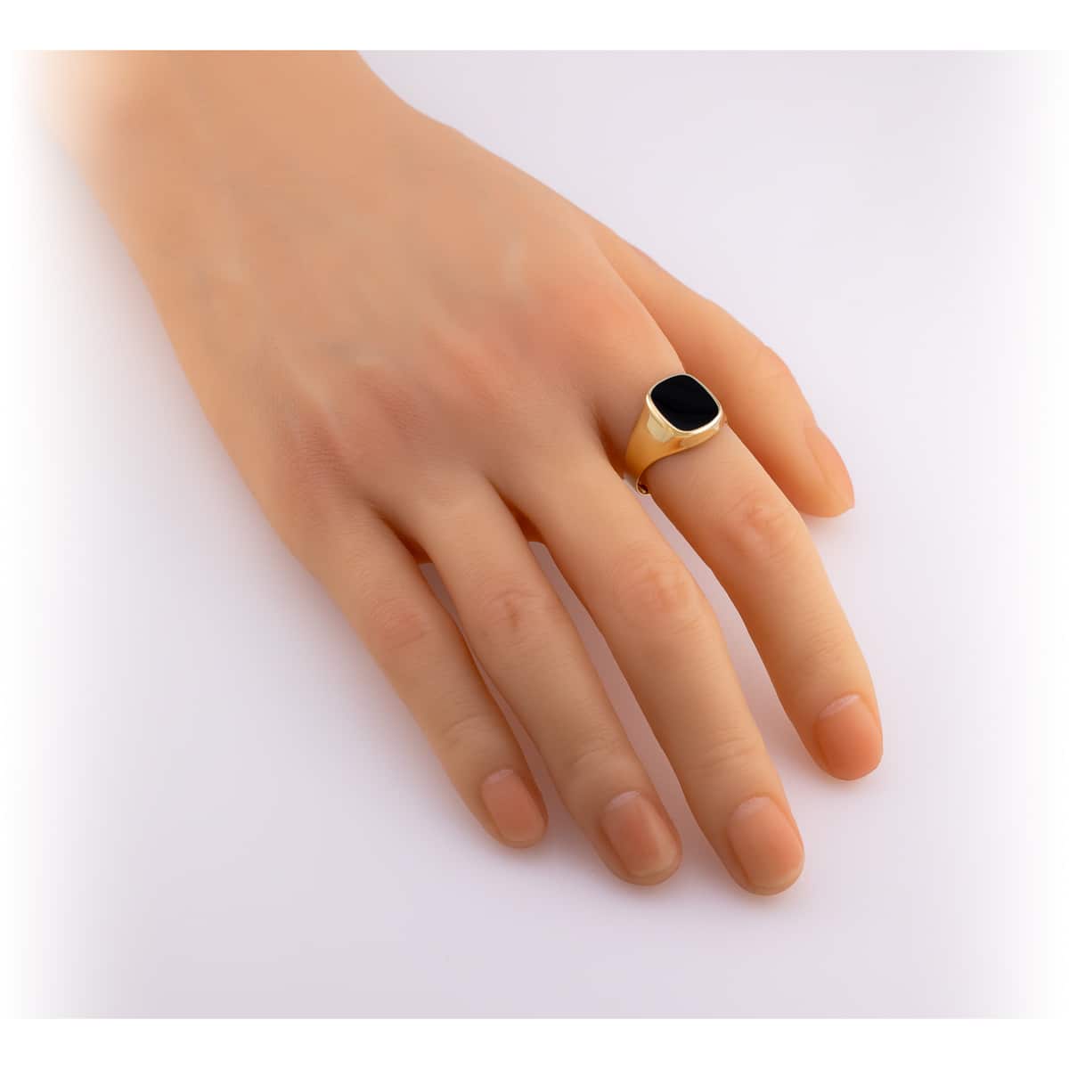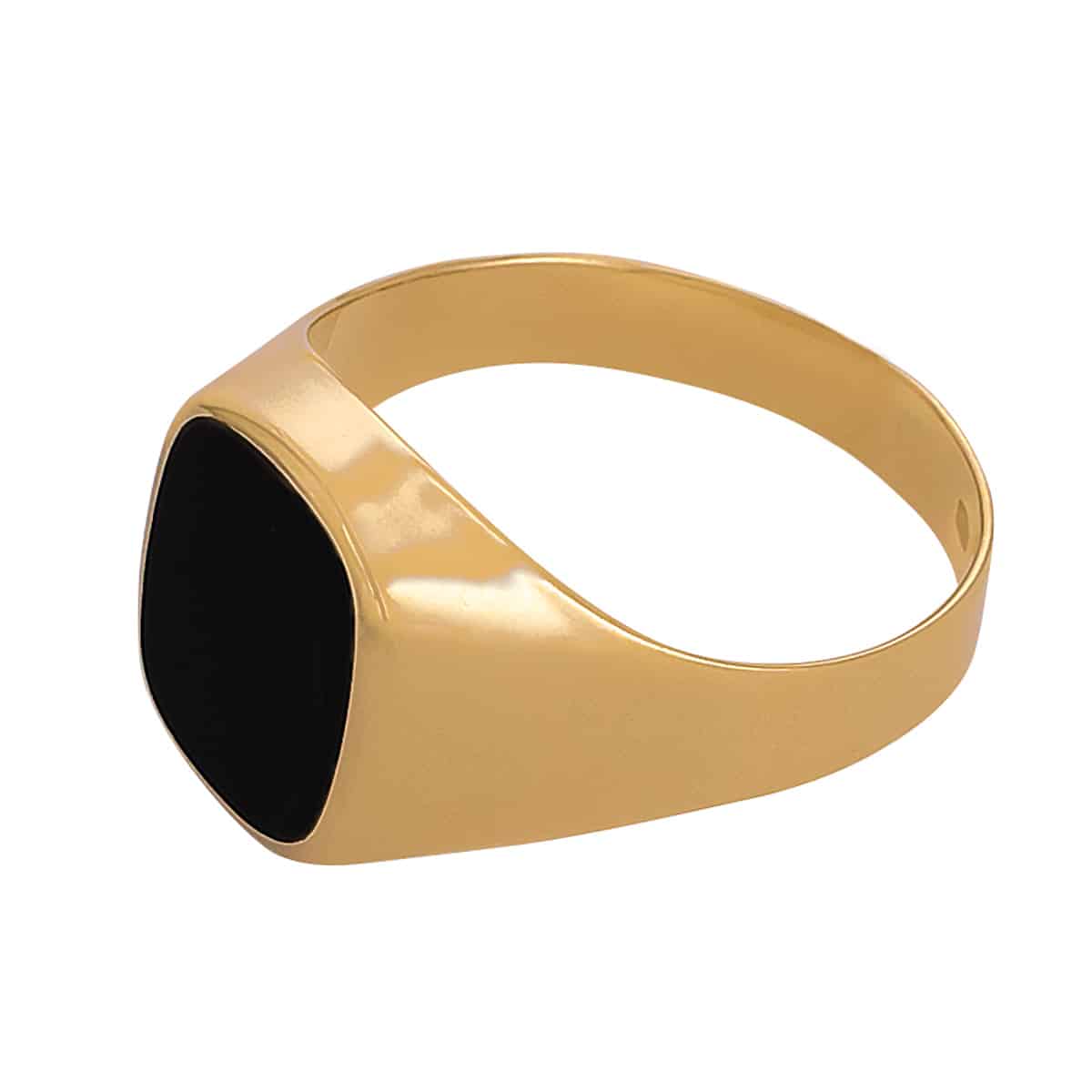 Sygnet wykonany jest z najwyższej jakości żółtego złota, które lśni ciepłym blaskiem. Jego prostokątny kształt jest klasyczny, lecz nowoczesny zarazem. Gładka powierzchnia sygnetu harmonijnie współgra z głęboko czarnym onyksowym oczkiem, które jest starannie osadzone w centrum. Onyks, o doskonałym szlifie, dodaje całości tajemniczości i elegancji, podkreślając szlachetność złota.