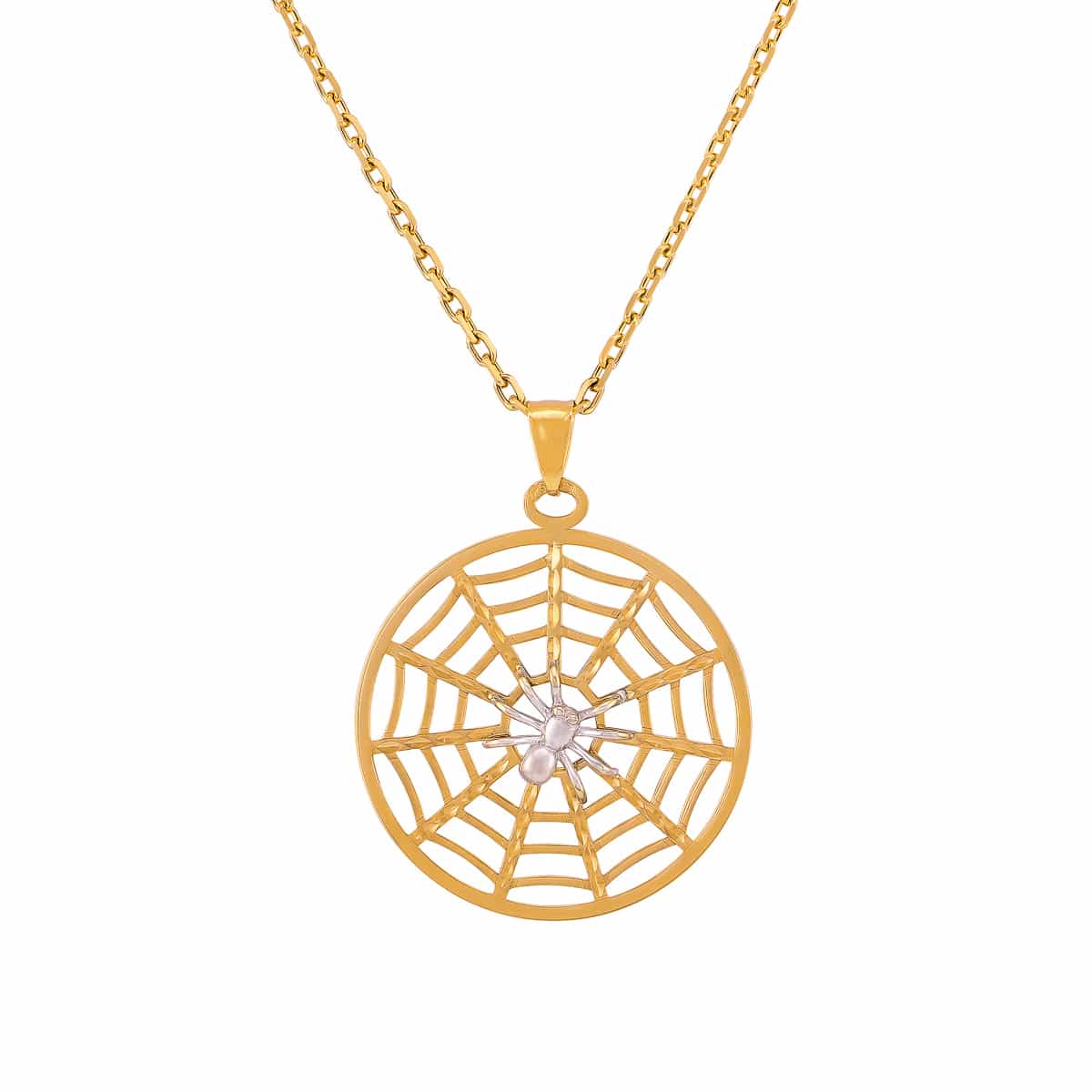 Na pierwszy rzut oka uwagę przyciąga starannie wykonany wzór ażurowy, przypominający misterną sieć pająka. Żółte złoto, z którego wykonana jest zawieszka, nadaje jej ciepły i klasyczny odcień, podczas gdy białe złoto w centralnej części dodaje nowoczesnego akcentu. Okrągły kształt zawieszki jest doskonale zbalansowany, a delikatne zdobienia dodatkowo podkreślają jej wyrafinowany charakter.