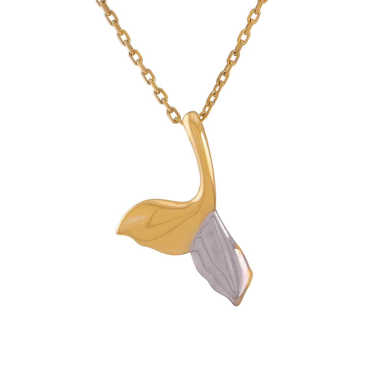 Ta zawieszka to prawdziwe dzieło sztuki jubilerskiej. Wykonana z dwóch rodzajów złota, żółtego i białego, przyciąga wzrok subtelnym kontrastem kolorów. Żółte złoto emanuje ciepłem i klasyczną elegancją, podczas gdy białe złoto dodaje nowoczesnego, chłodnego akcentu. Kształt ogona wiloryba jest nie tylko oryginalny, ale i pełen wdzięku, co sprawia, że zawieszka doskonale podkreśla indywidualność każdej kobiety. Gładka powierzchnia i delikatne linie dodają jej lekkości i finezji.