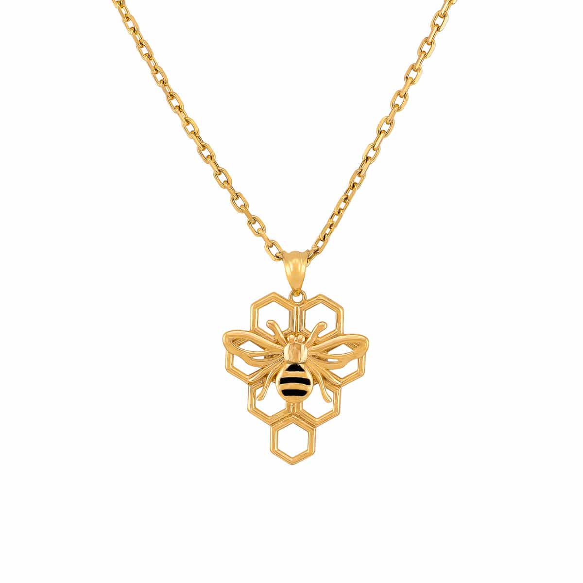 Dodaj odrobinę natury do swojej kolekcji biżuterii dzięki zawieszce z żółtego złota przedstawiającej pszczołę na plastrze miodu. Ten unikalny projekt nie tylko przyciąga wzrok, ale również symbolizuje harmonię i pracowitość, które są nieodłącznymi elementami natury.