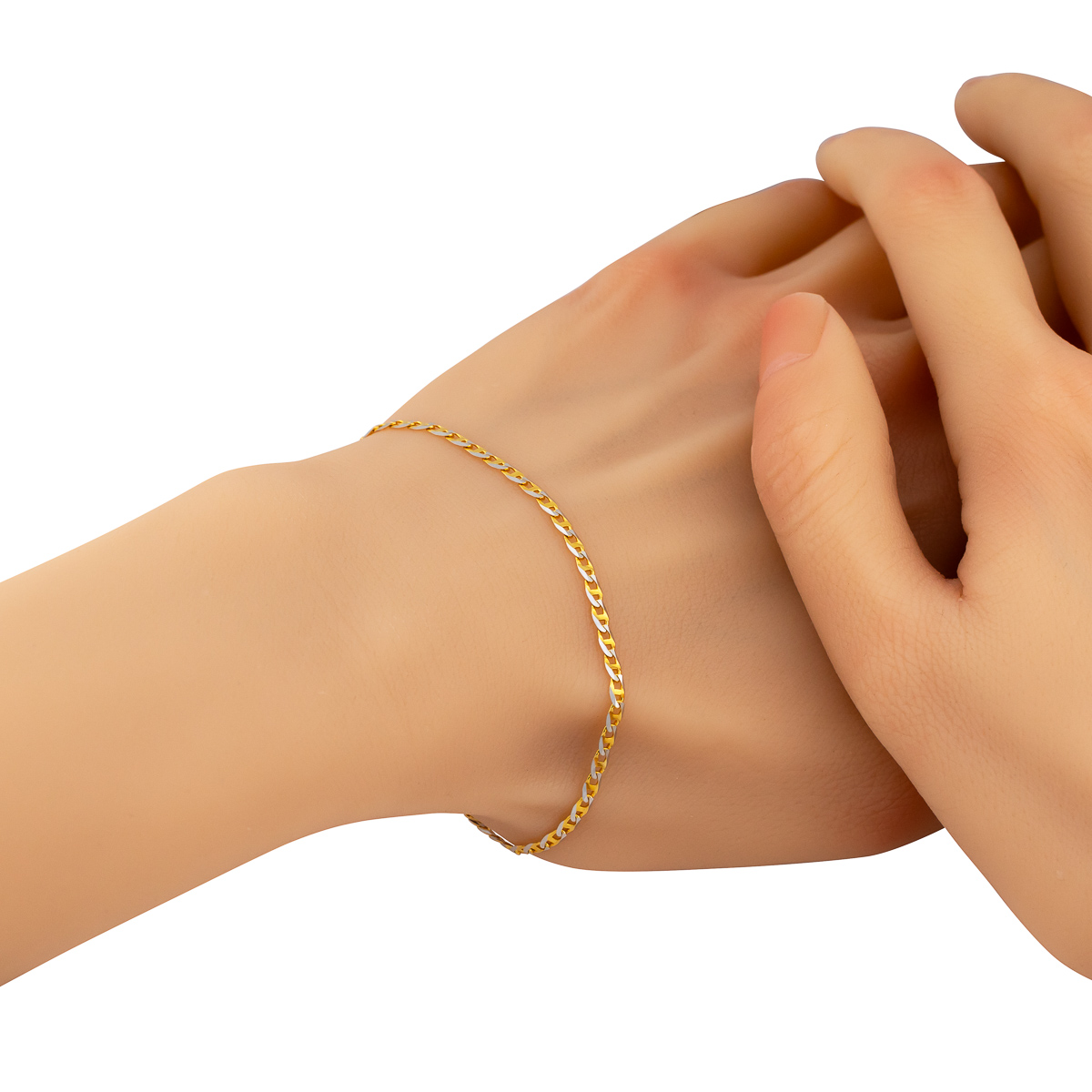 - Precyzyjne diamentowanie: Część ogniw posiada specjalny szlif diamentowy, który potęguje blask kruszcu, sprawiając, że bransoletka mieni się przy każdym ruchu ręki.