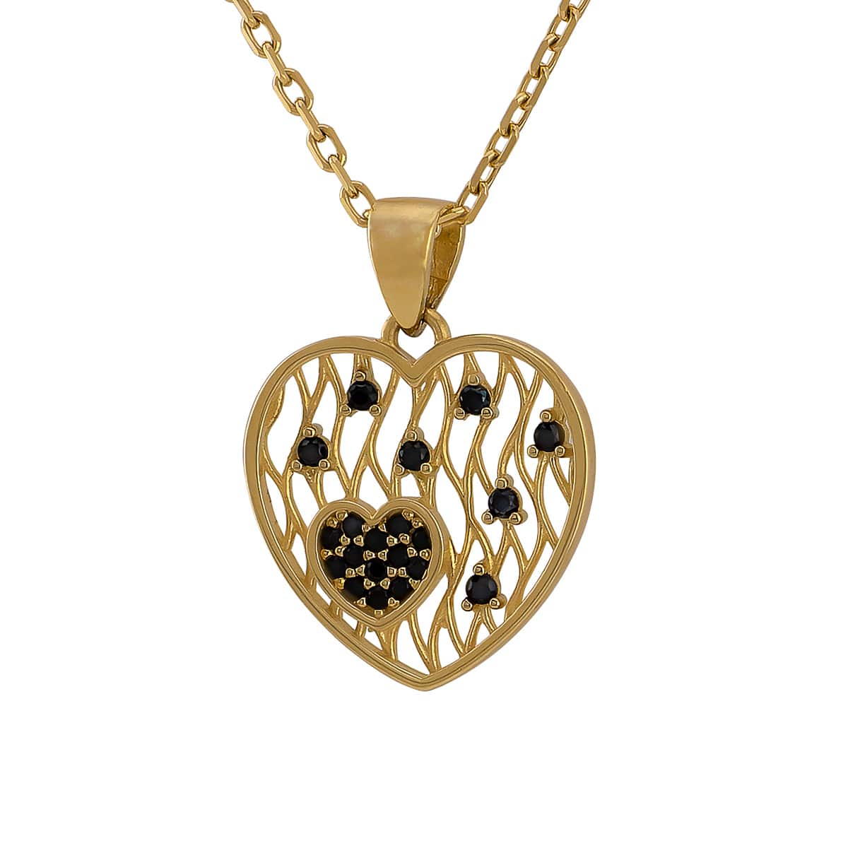 Złota Zawieszka Ażurowe Serce z Czarnymi Cyrkoniami pr. 585