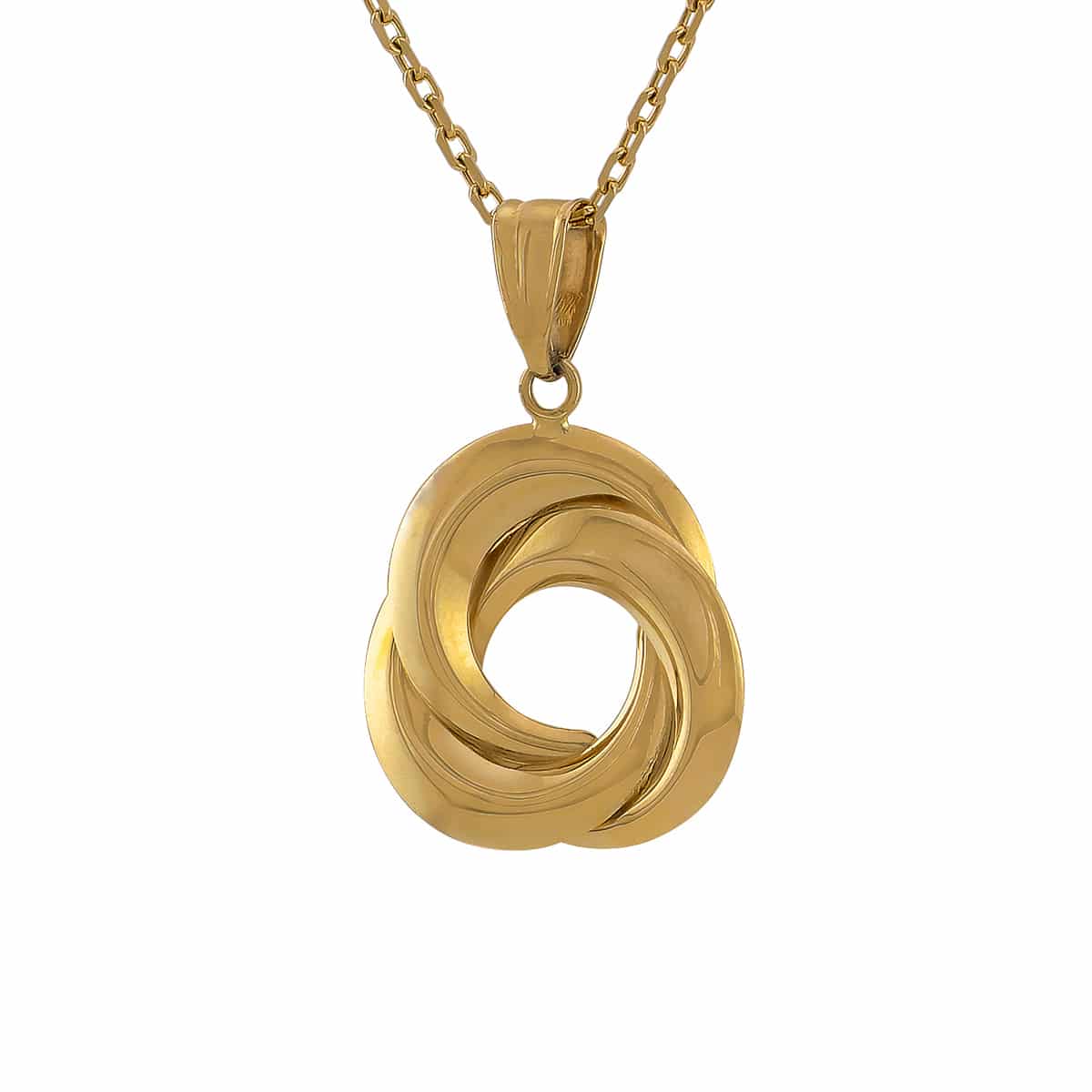 - Trójwymiarowy splot: Przeplatające się pasma złota nadają zawieszce głębi i sprawiają, że z każdej strony prezentuje się ona inaczej, intrygująco załamując światło.
