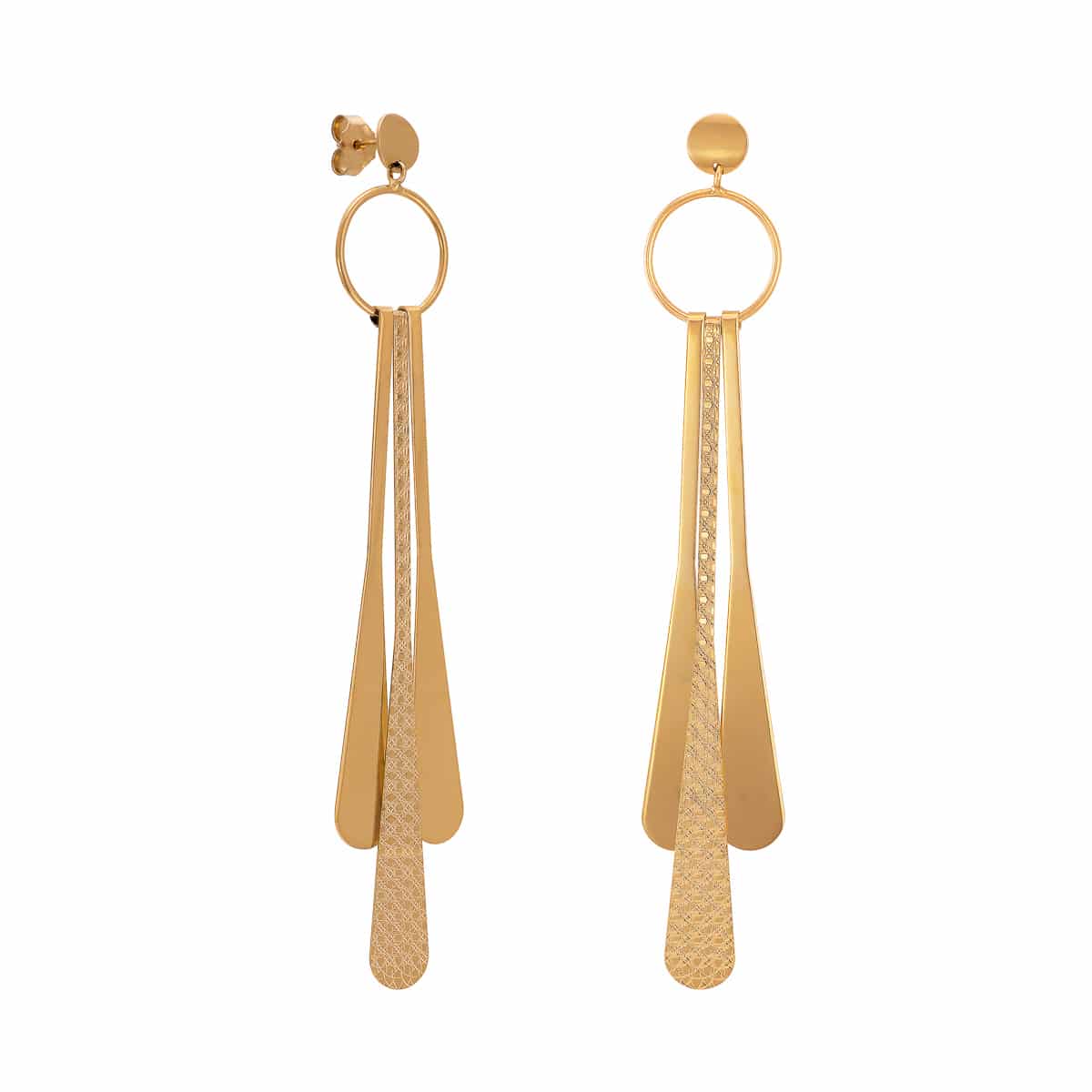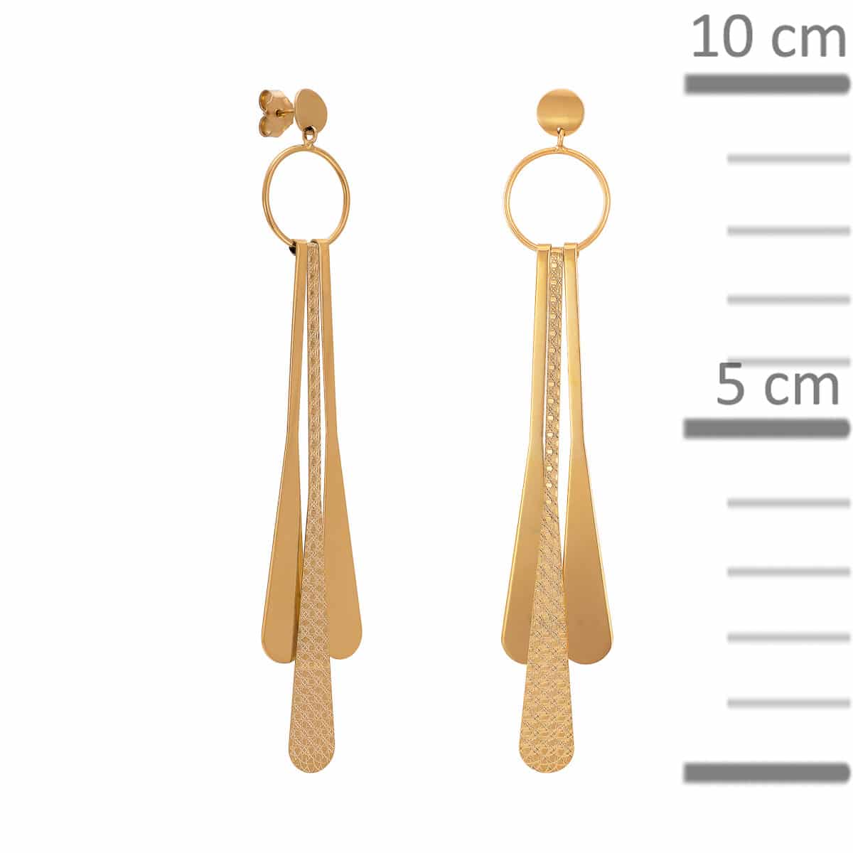 Podaruj sobie lub bliskiej osobie odrobinę luksusu i wybierz Złote długie kolczyki z wiszącymi blaszkami na sztyfcie 82708. Niech staną się one symbolem elegancji i wyrafinowanego gustu, dodając blasku każdemu dniu.