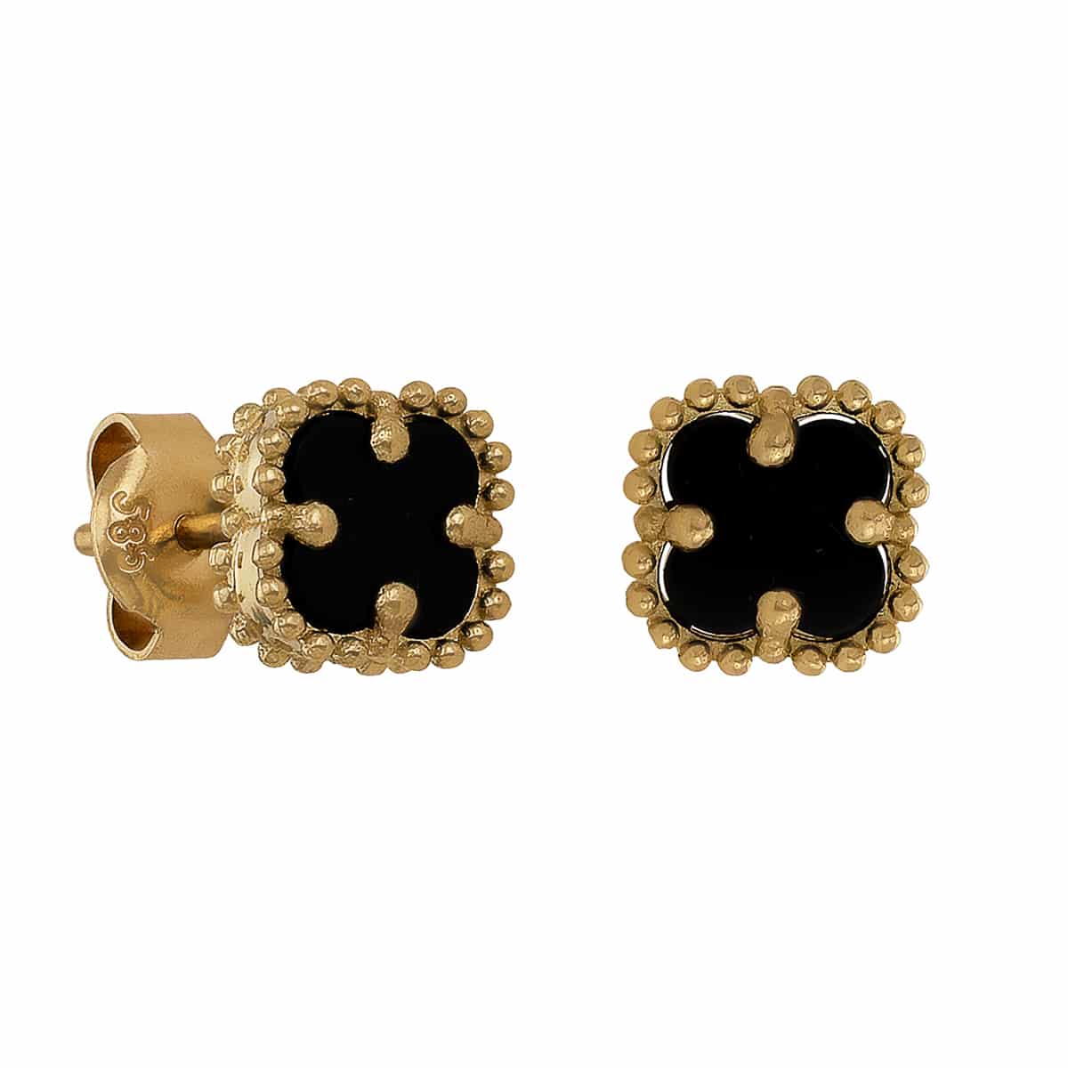 Złote Kolczyki Koniczynki– Czarny Onyks pr. 585