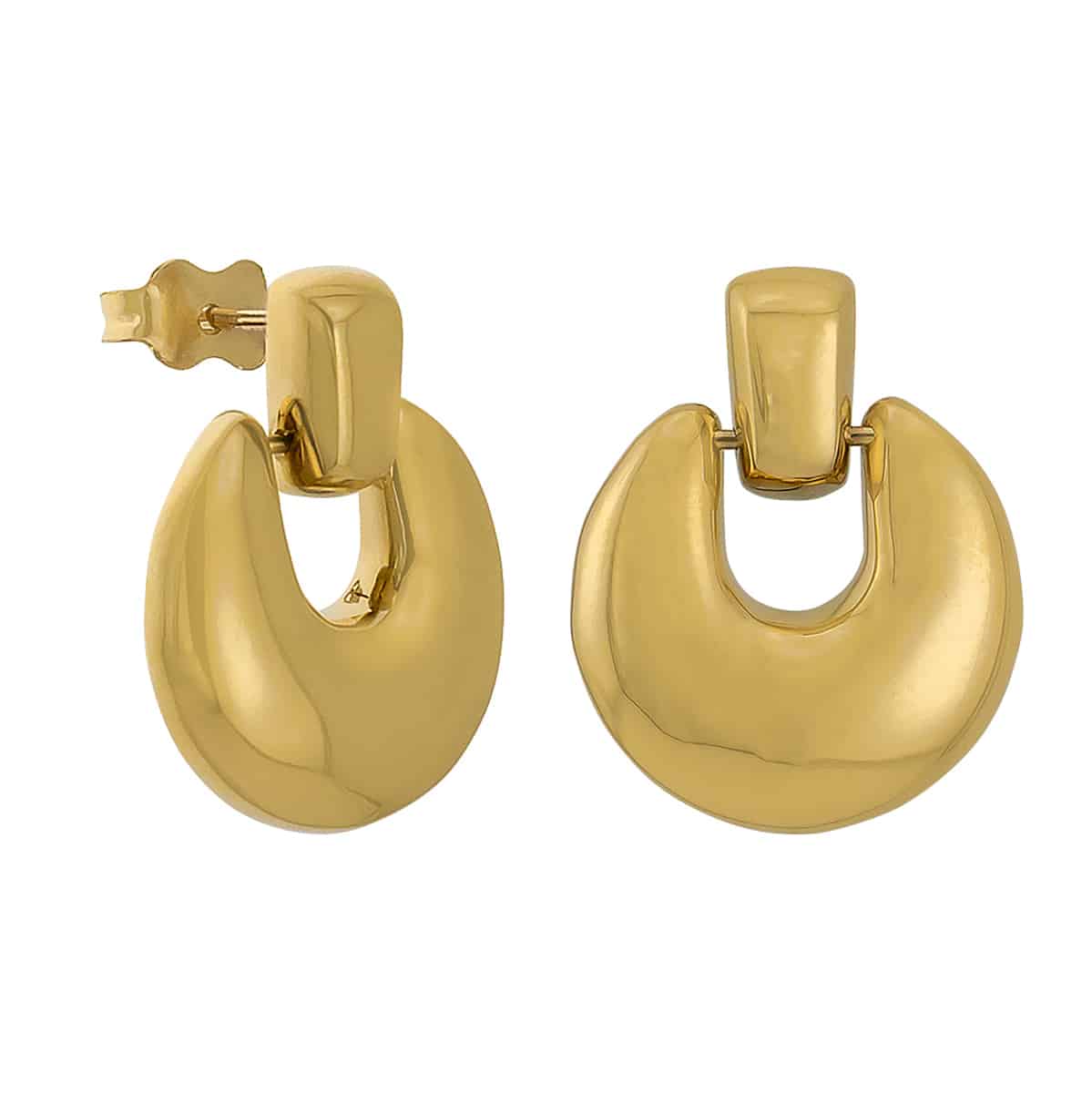 Wykonane z wysokiej jakości żółtego złota, kolczyki prezentują się niezwykle luksusowo. Centralnym elementem ich designu jest delikatne koło, które nadaje całości lekkości i finezji, tworząc harmonijną kompozycję.