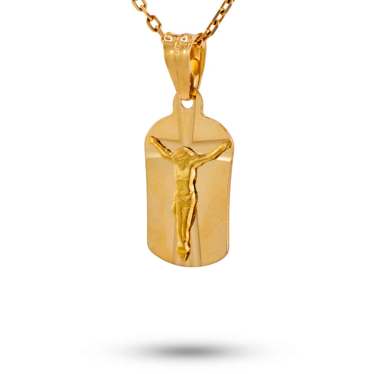 Komplet krzyżyk na blaszce z łańcuszkiem z żółtego złota pr.585