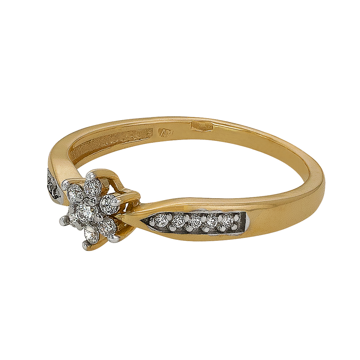 Złoty Pierścionek „Lśniąca Gwiazda” – Kwiatowy Motyw i Diamentowy Blask pr. 585