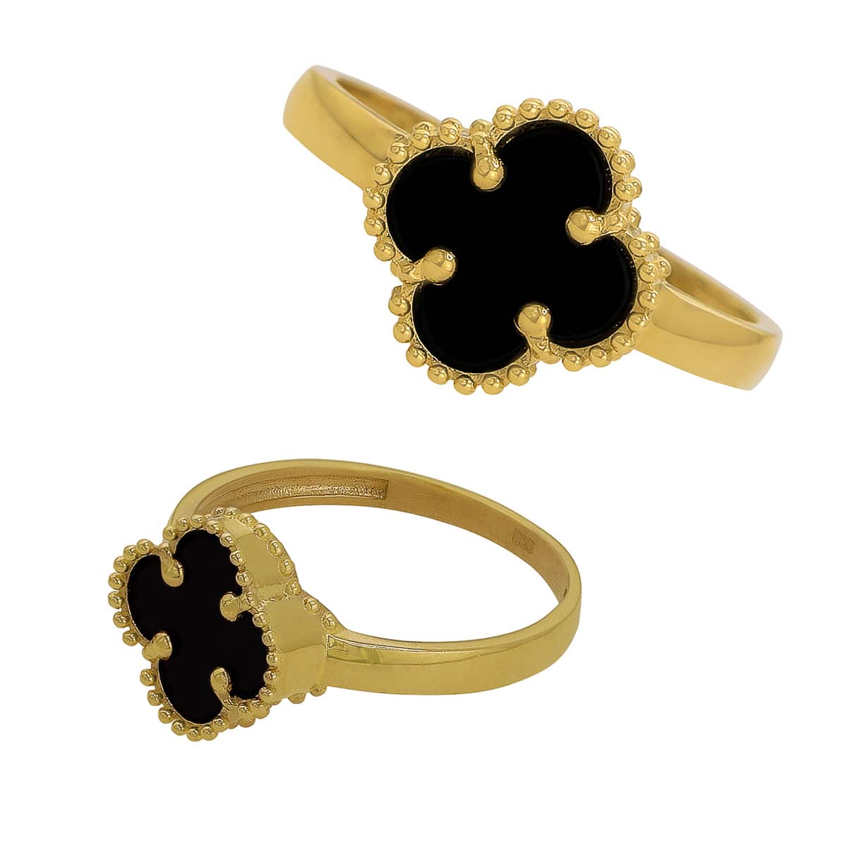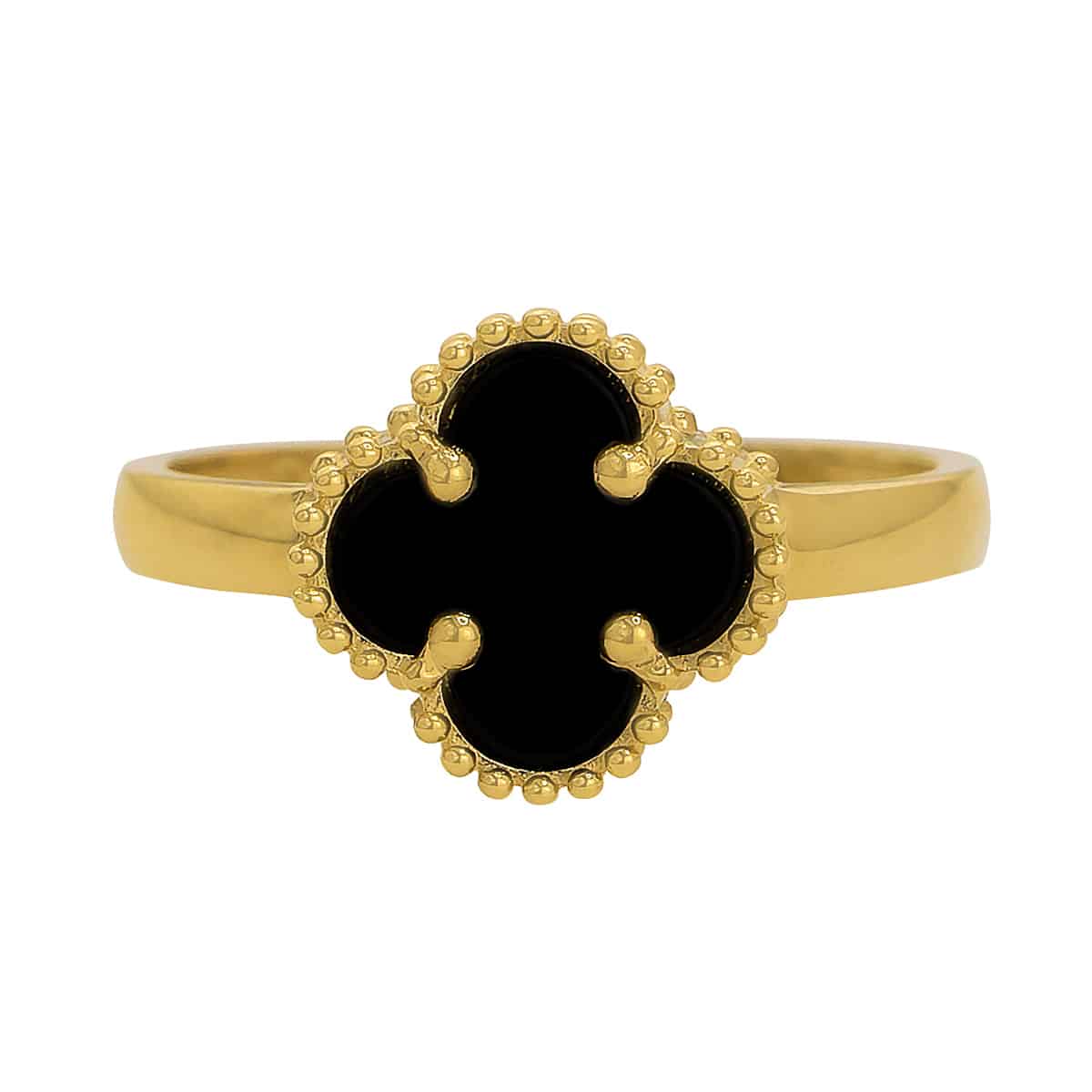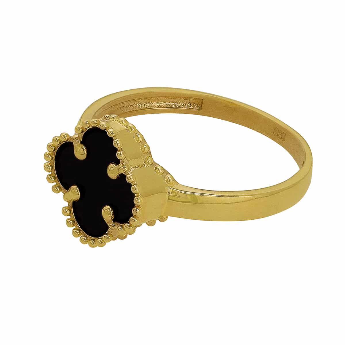 Złoty Pierścionek– Marokańska Koniczynka z Czarnym Onyksem pr. 585