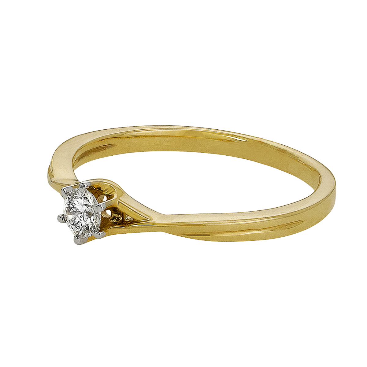 Złoty Pierścionek z Brylantem w Sześcioramiennej Koronie i Przeplatanej Szynie – pr. 585